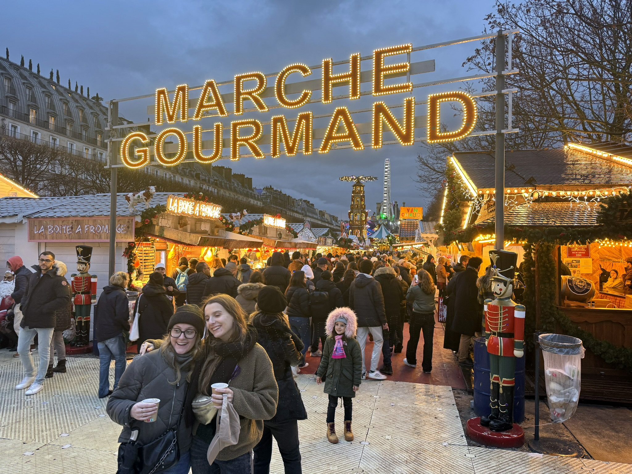 More walking—Uber had no drivers available and the museum lady was unable to find a taxi willing to pick me up, so another 2.2 miles afoot. I intended to spend a full day in Saumur, but the calendar betrayed me. The famous cavalry museum downtown is closed during the winter, which came as a surprise to me, and the big chateau on the hill overlooking the river is closed as well. So I took a late afternoon train back, stopping at St-Pierre-des-Corps, a close-in suburb of Tours, where I enjoyed a glass of Chinon, a local red. The TGV back to Montparnasse was a quick hour ride. The station was teeming with enormous crowds, people practically shoulder to shoulder while a quarter of them were frantically racing with roller bags. After returning to the hotel, I walked around the city streets for a while, admiring some very elaborate Christmas decorations, and settled on a brasserie called Café Madeleine, where I had a Croque Monsieur avec frites. Nothing special, but after a very long day I was not looking for the ultimate in gastronomy.