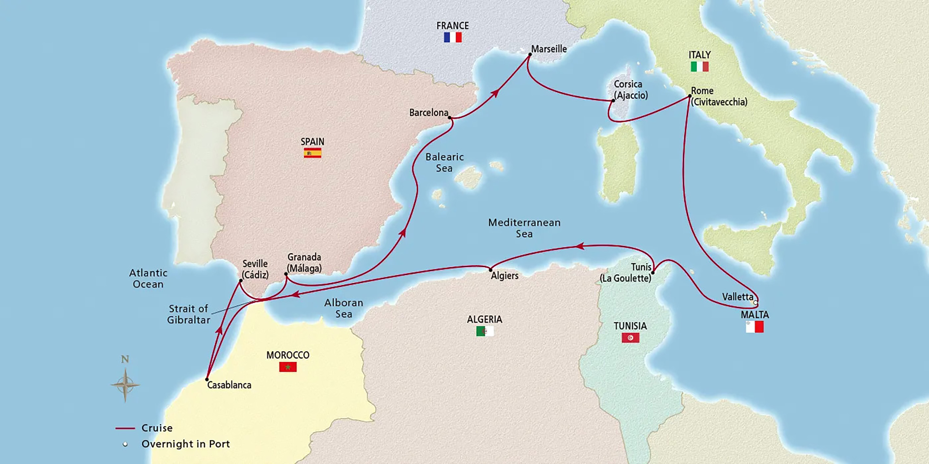 This is my (Hal’s) report on Hal and Nancy’s cruise through the Western Mediterranean and North Africa with Viking Cruises—Malta, Morocco & The Mediterranean—starting and ending in Barcelona. This is our second Viking Ocean cruise. We have also taken a Viking river cruise (Rhine Christmas Markets) and an expedition ship cruise (Great Lakes).