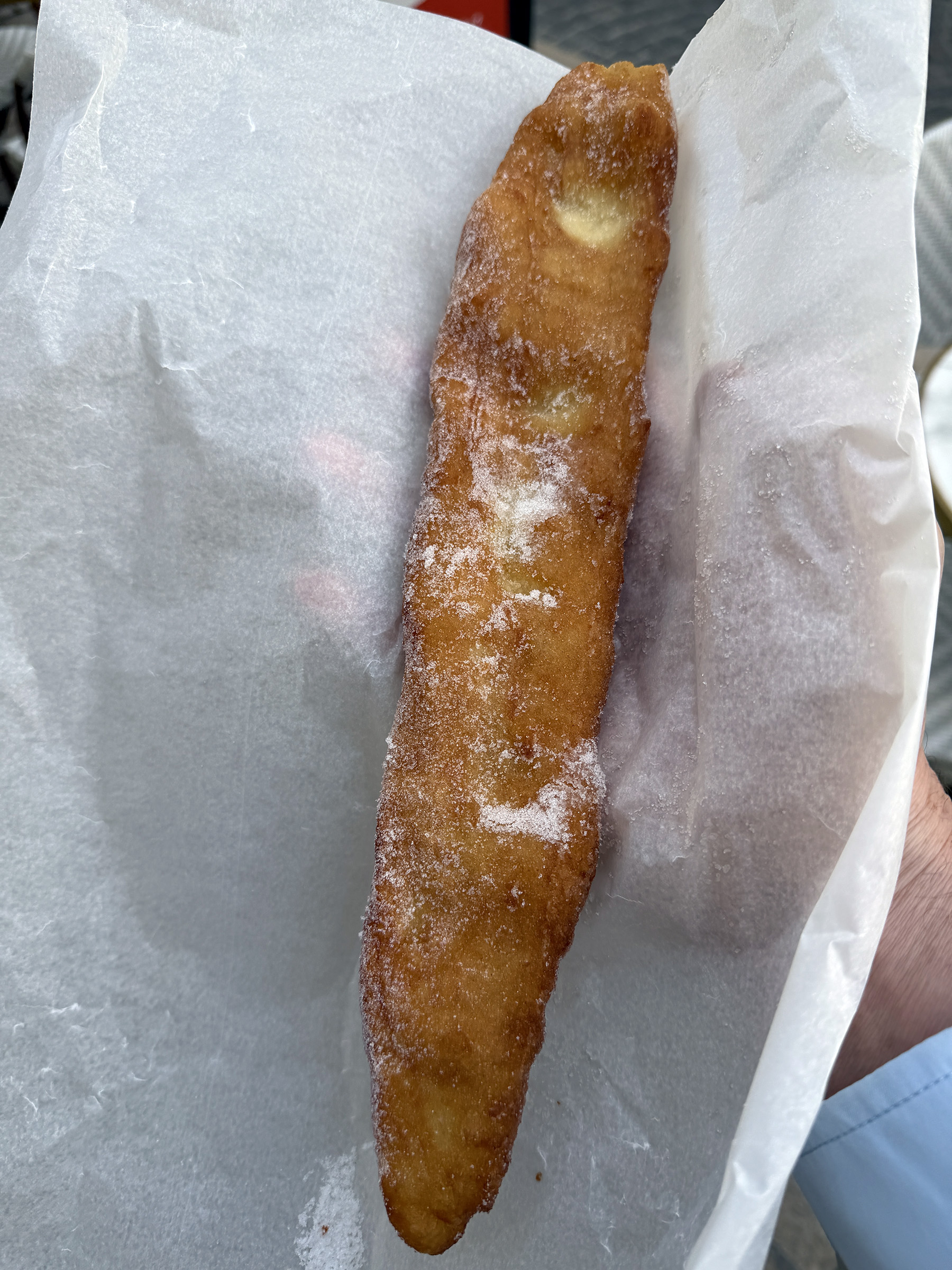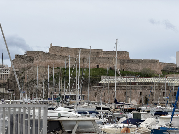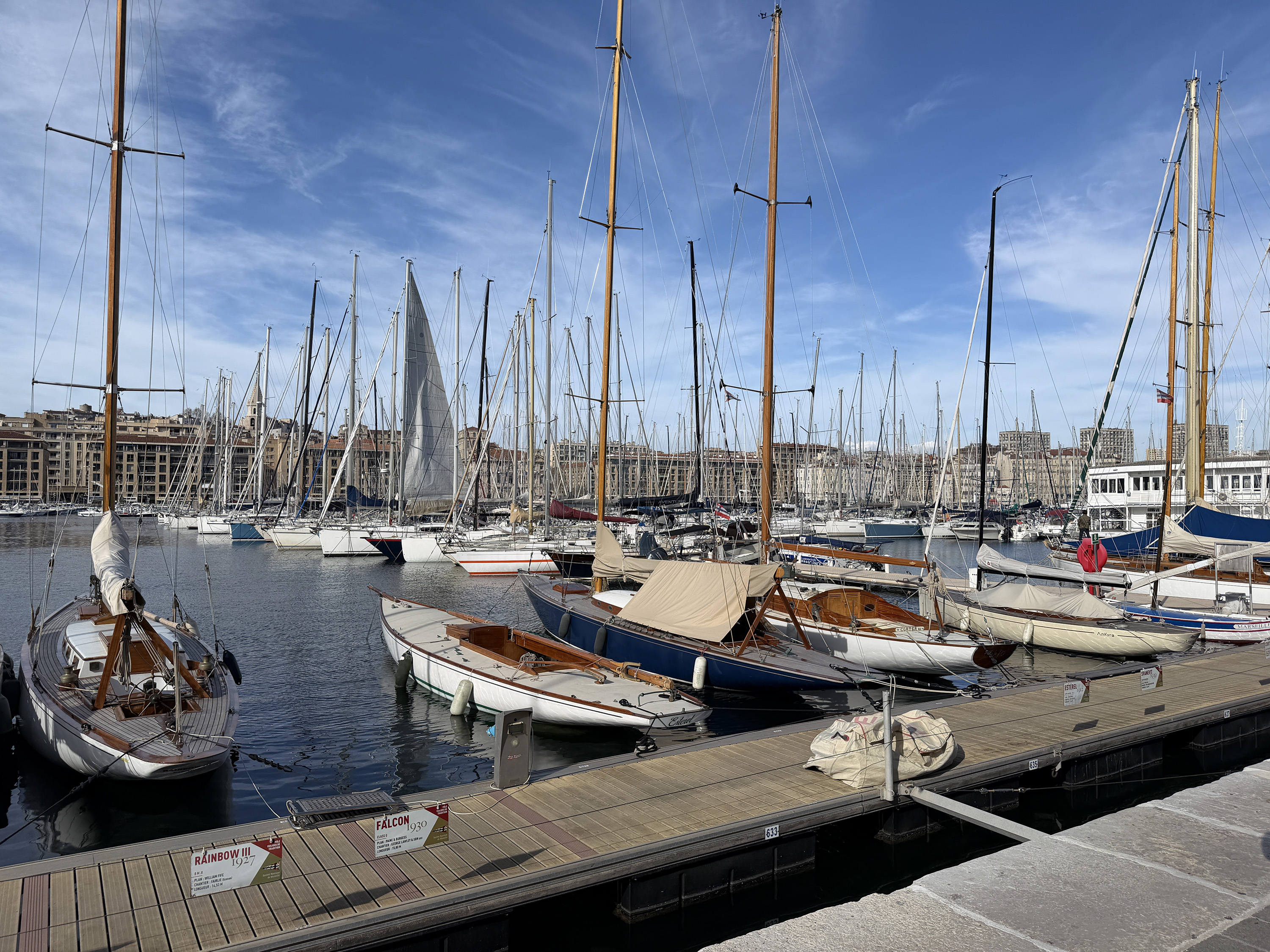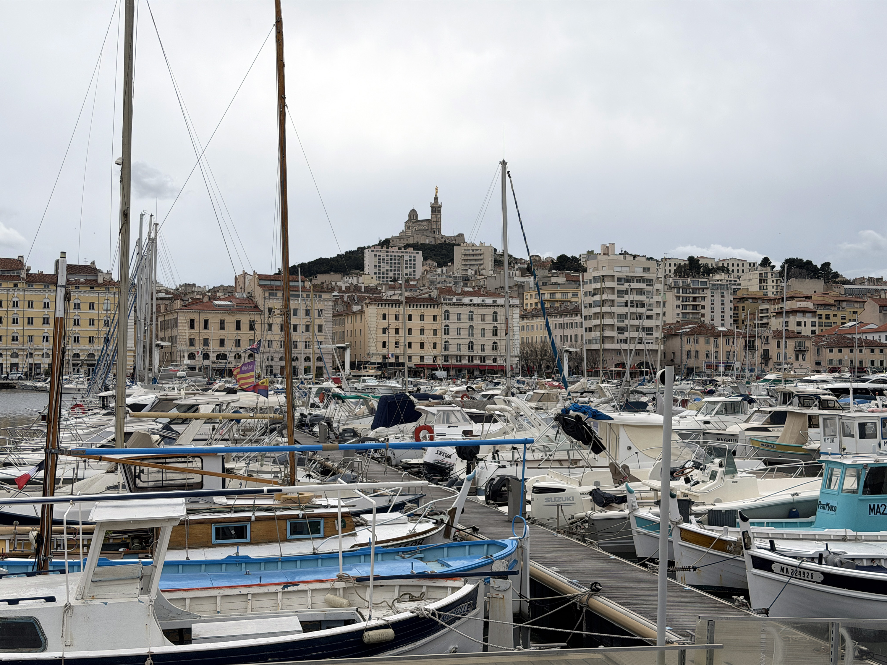Overnight stay in Hotel d’Amiens, not far from the Gare de l’Est. Basic but comfortable. We arrived late Thursday night, exhausted. Then over to the Gare de Lyon on Friday for a non-stop Trenitalia Frecciarossa (Red Arrow) TGV (another 4 hours) to Marseille. The ride was very comfortable, with excellent WiFi for a change, and there was a lot of nice scenery to take in. Marseille weather is beautiful today, and we enjoyed a walk around the old port area. (In 2024, I visited Marseille and said it was a "dump," but that was mostly around the train station, and today’s area is quite different.) I tried a local specialty from a street vendor, a Chichi Sucre, which is very similar to a churro shaped like a baguette. We overnighted in the Radisson Blu Old Port Hotel, which was excellent. But this excursion to recover from the Lufthansa strike represented quite an expensive set of detours.