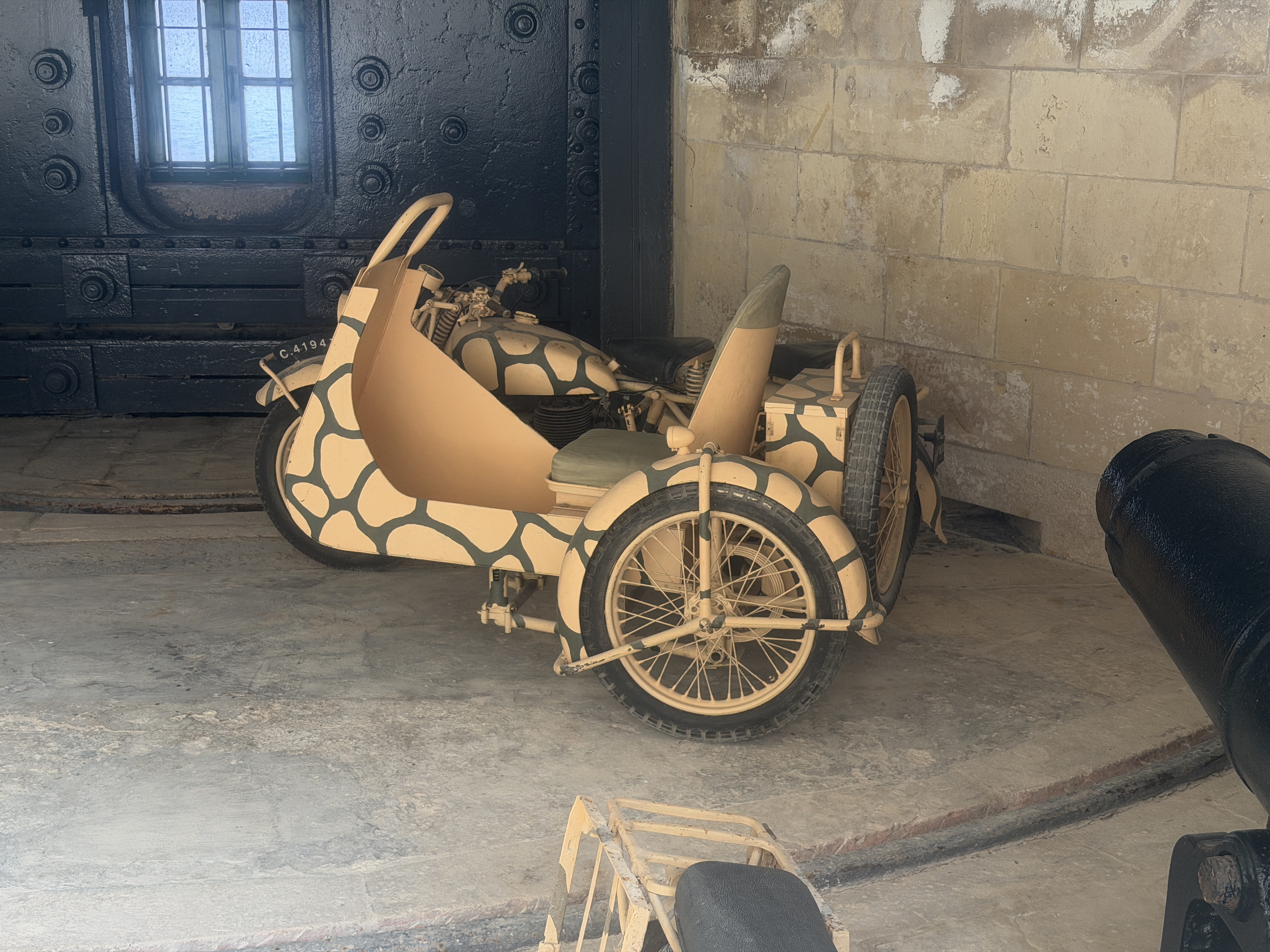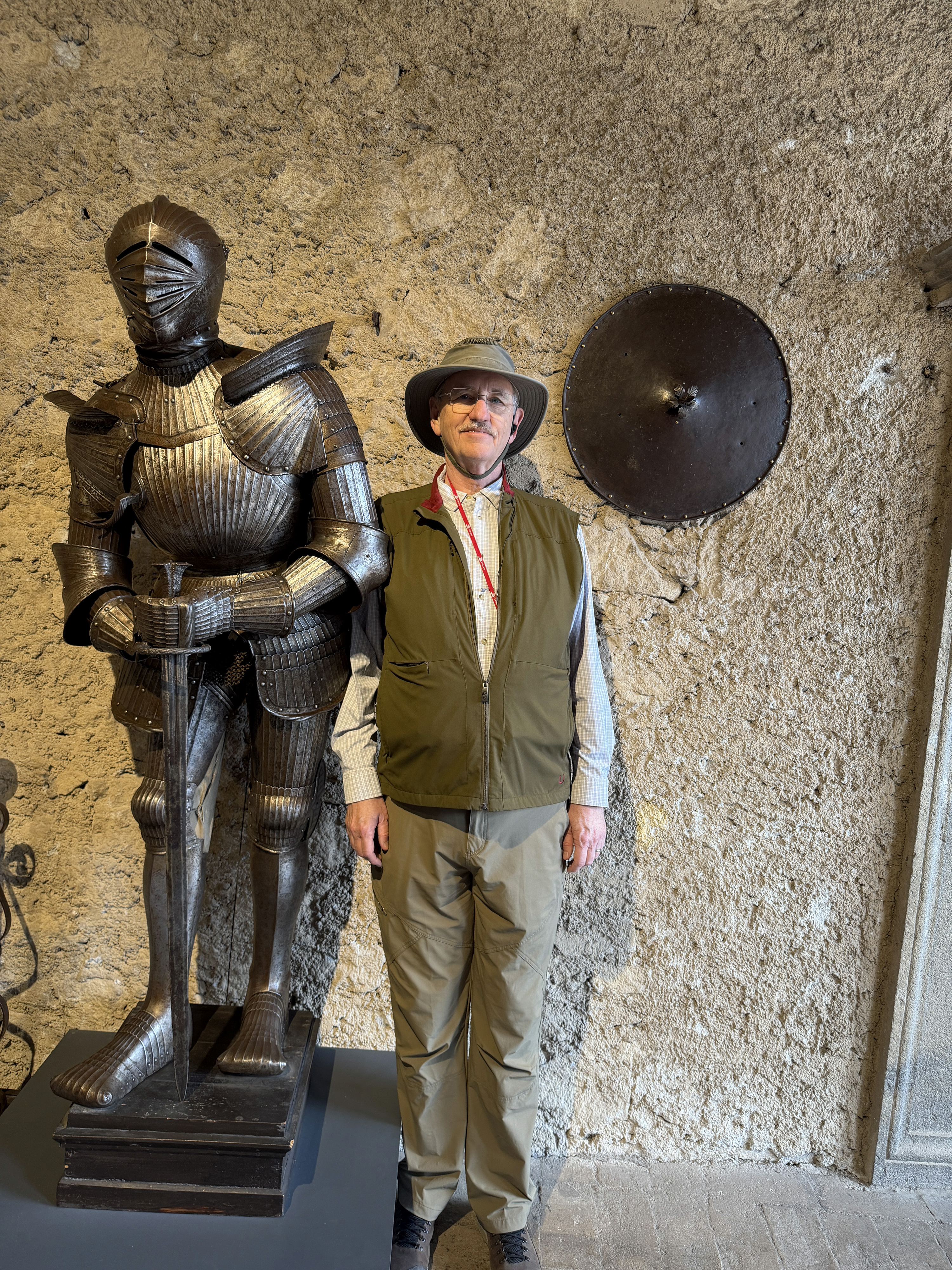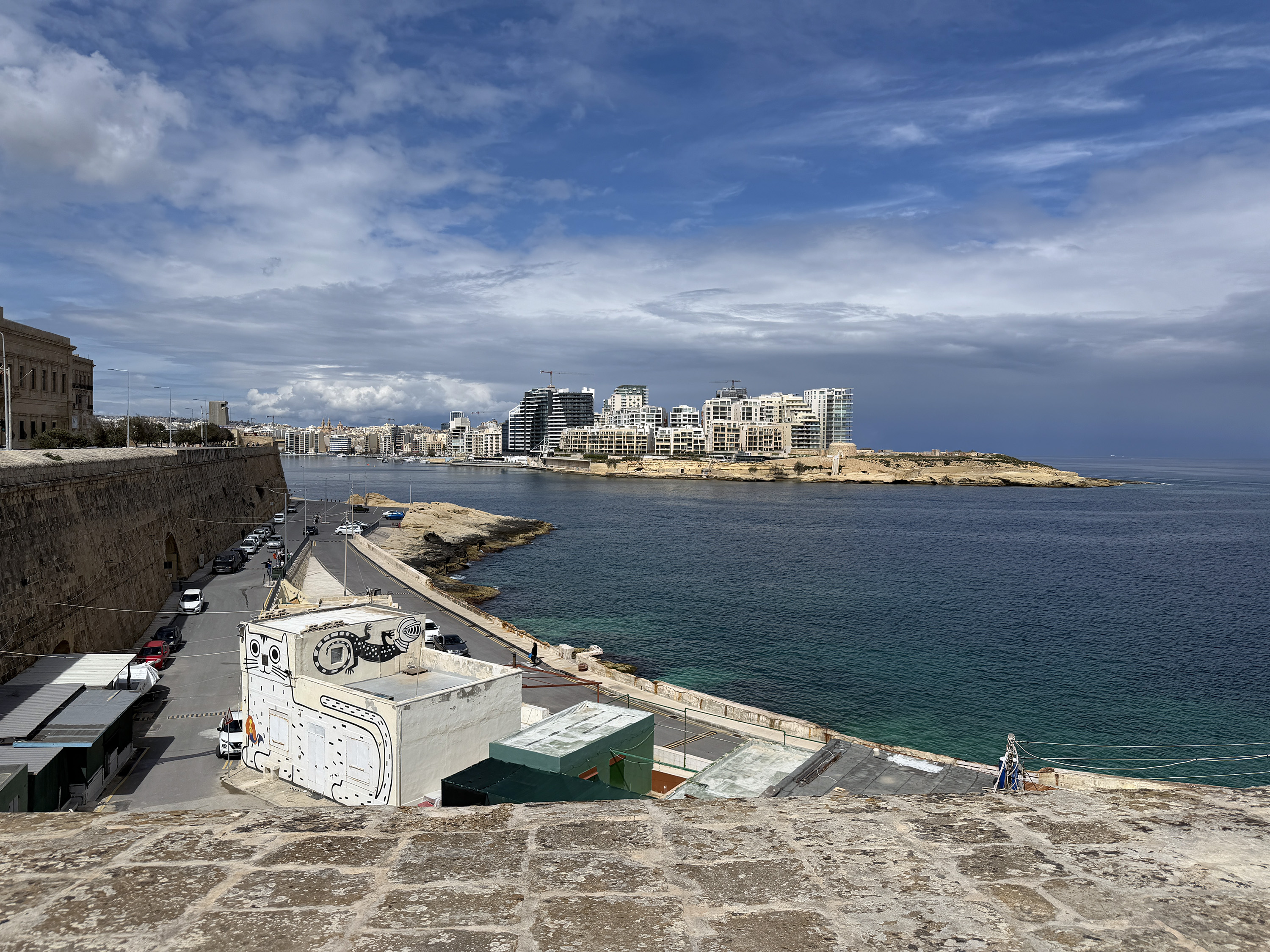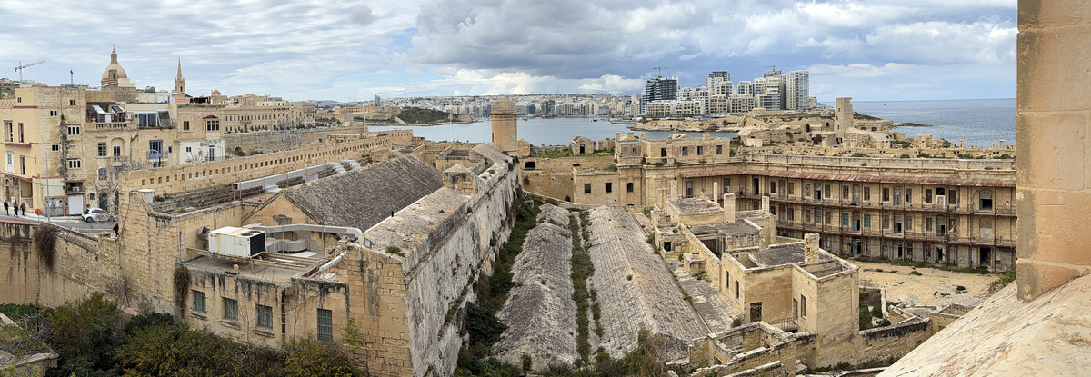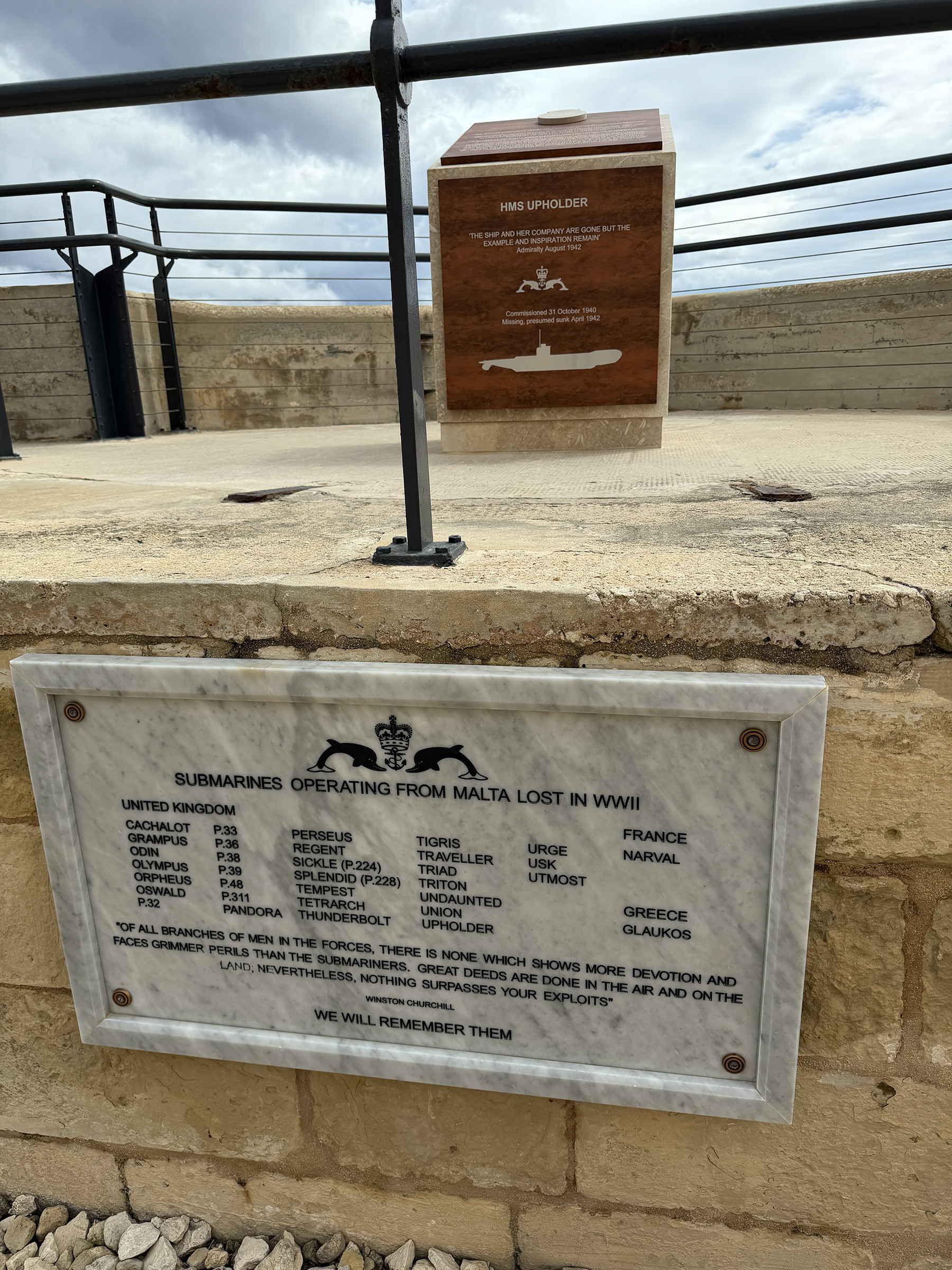 Today is a recuperation day for Nancy, but she encouraged me to get out and do something. I had to cancel a Viking shore excursion about “Wartime Malta,” so I had a few catch-up opportunities. Fort Elmo is right at the tip of the peninsula that hosts downtown Valletta. It was built by the Knights to defend the harbor and was expanded over the years. They are currently hosting an art exhibition called Malta Biennale 26, which I mostly ignored. Up on the parapets, there were great views of the harbor, and I almost caught a glimpse of King’s Gate in Rinella Bay, where Ned Stark arrived at King’s Landing in Season 1 of Game of Thrones. (The next season, they moved KL to Dubrovnik.) There are many big gun barrels on display outside, none of them identified. The mighty one I posed with had a muzzle diameter of 11.5 inches.