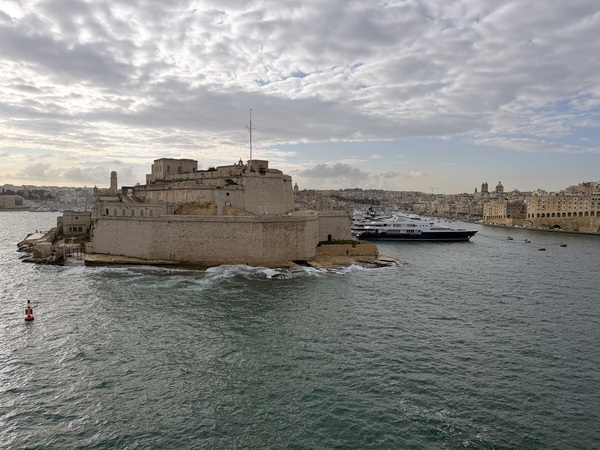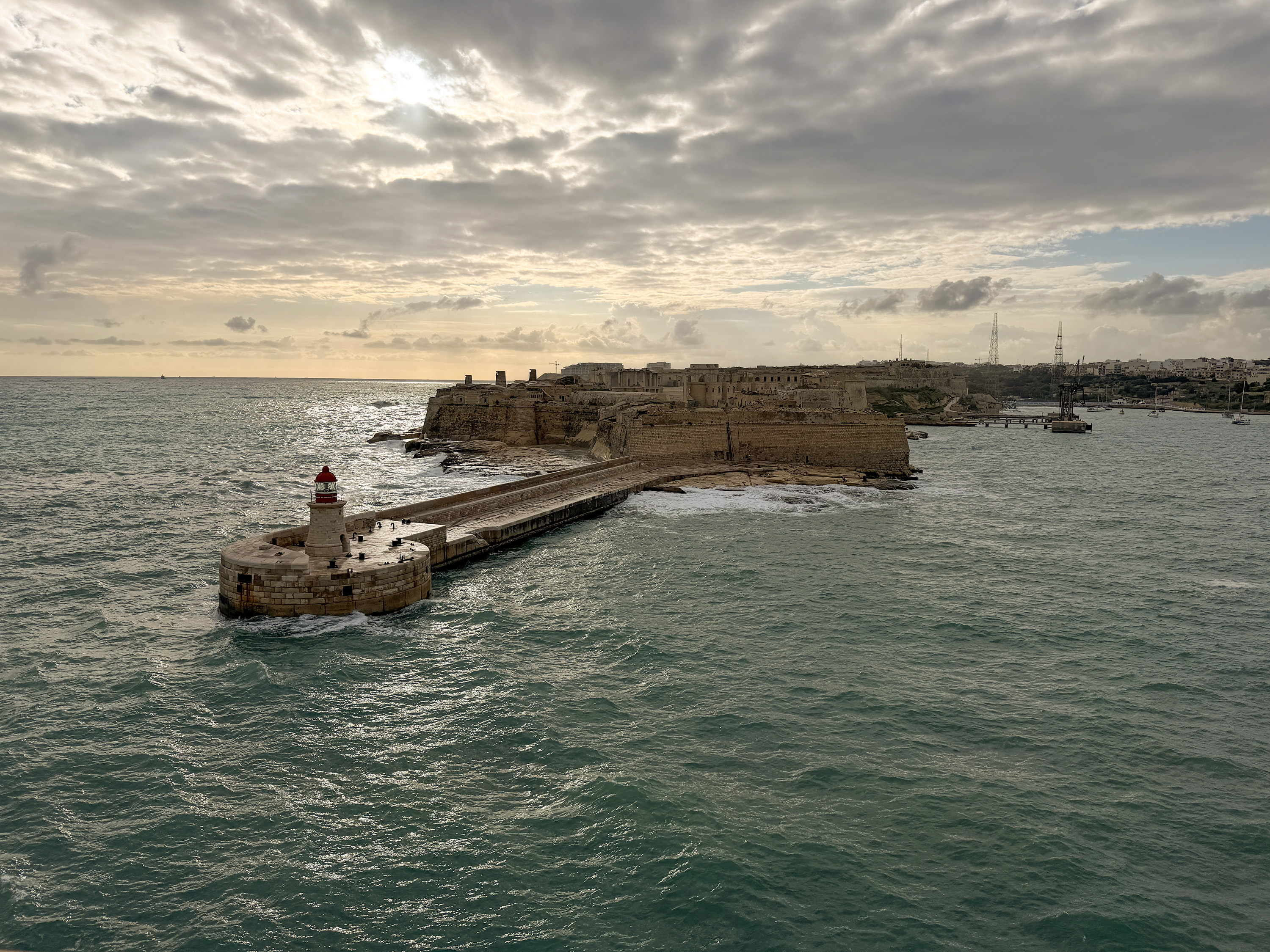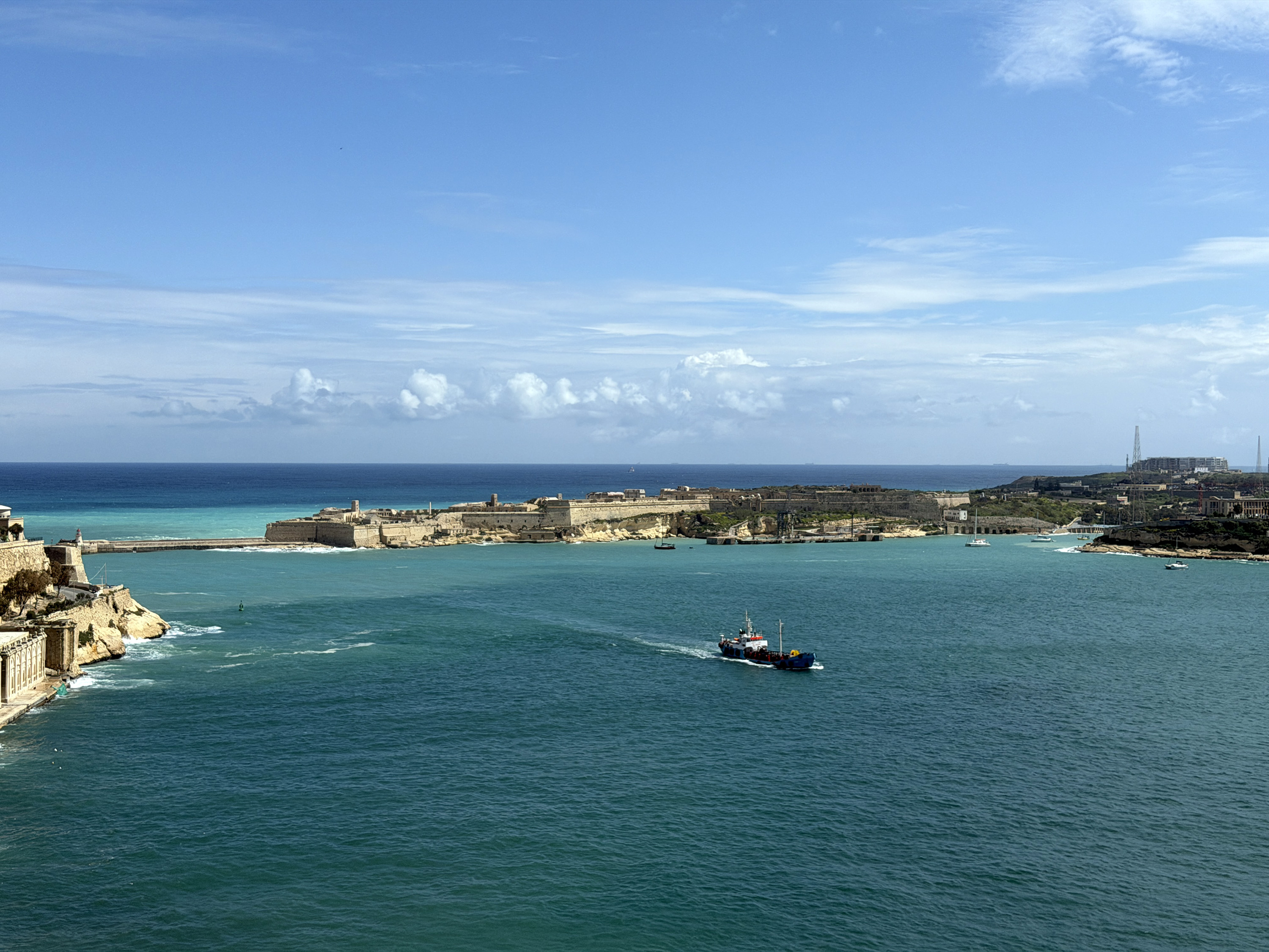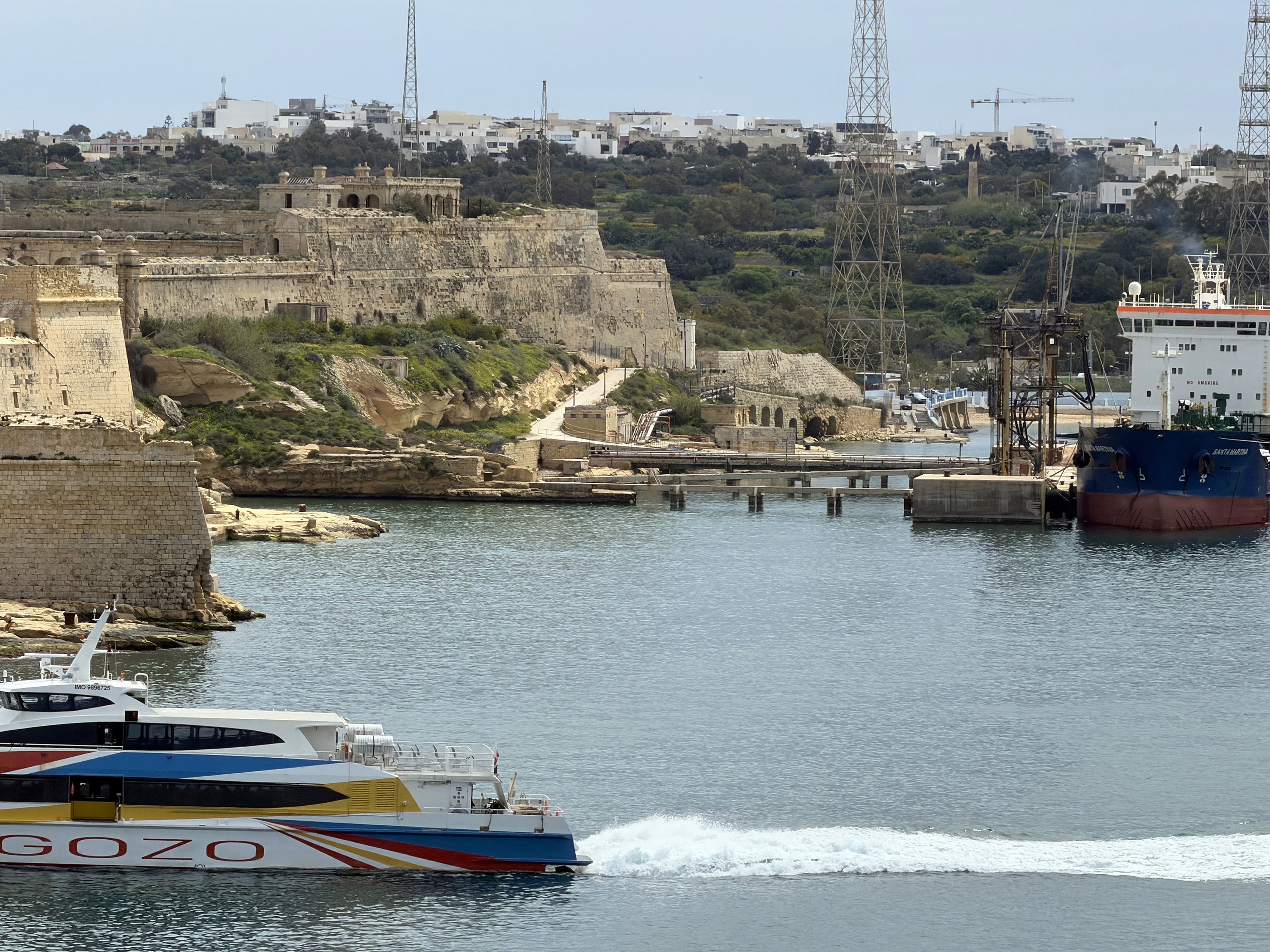 We awoke to significant ship rolling as we approached the port of Valletta. Vesta squeezed herself into the harbor, and it was calm. We heard that the giant MSC cruise ship we have shared itineraries with could not make it in. Apparently, the prevailing wind was directly lined up with the narrow mouth of the harbor, making it too choppy for the big ship. So that meant there were 6,000 fewer tourists in the city today. It’s interesting to note that Valletta is Europe’s smallest capital city—only around 5,000 residents.
