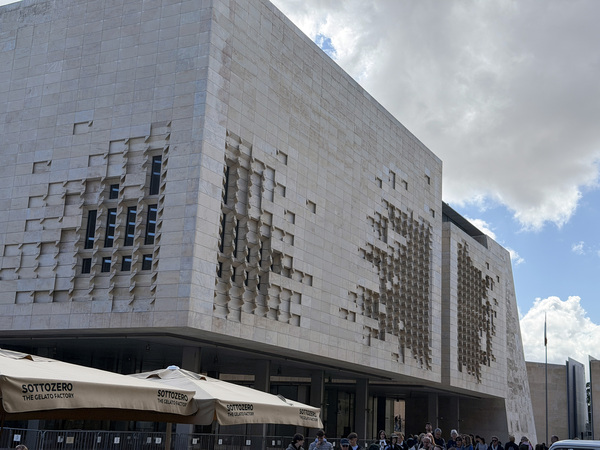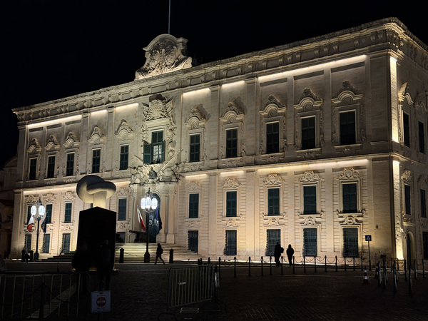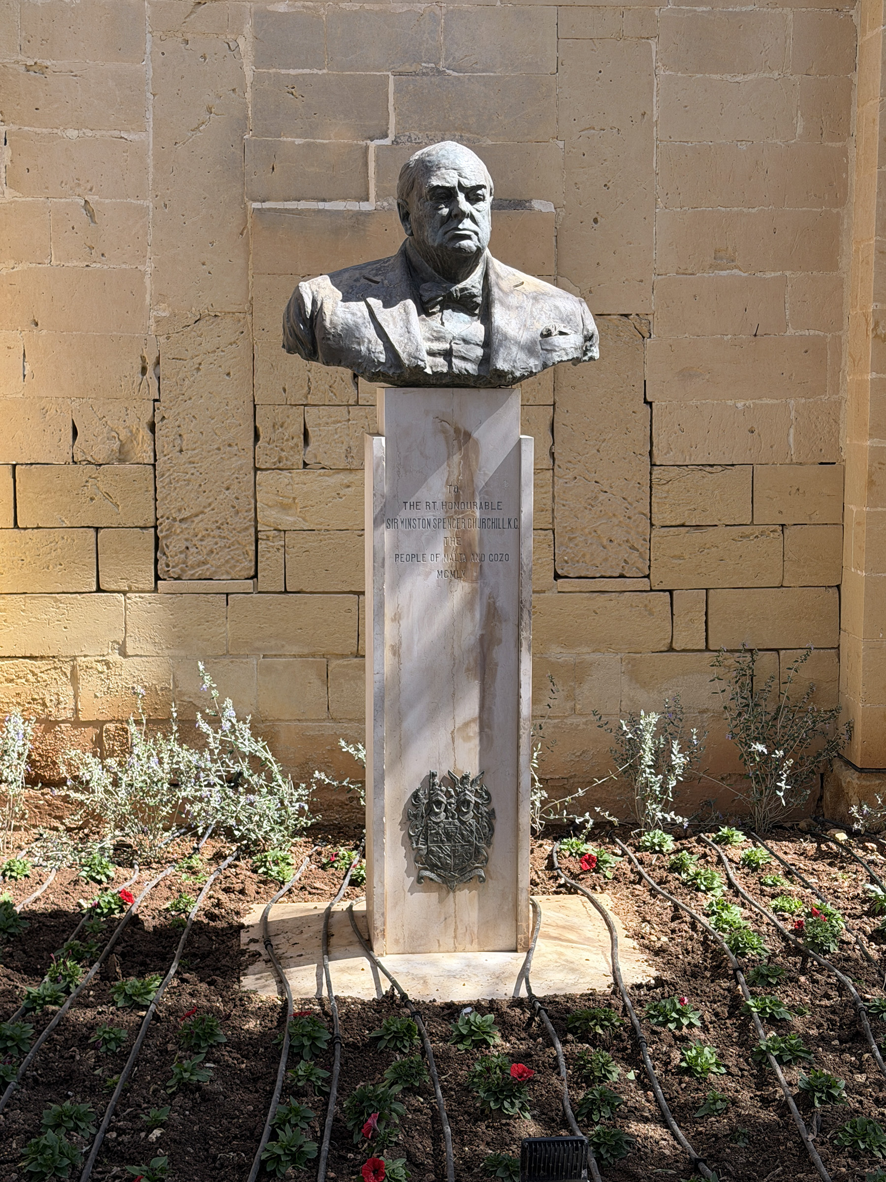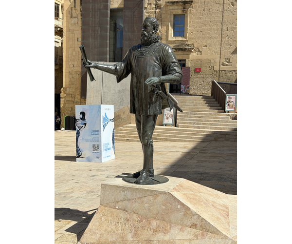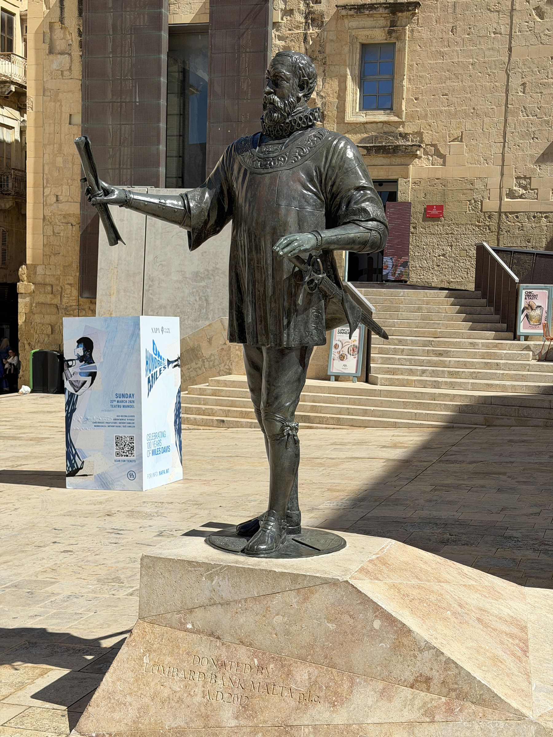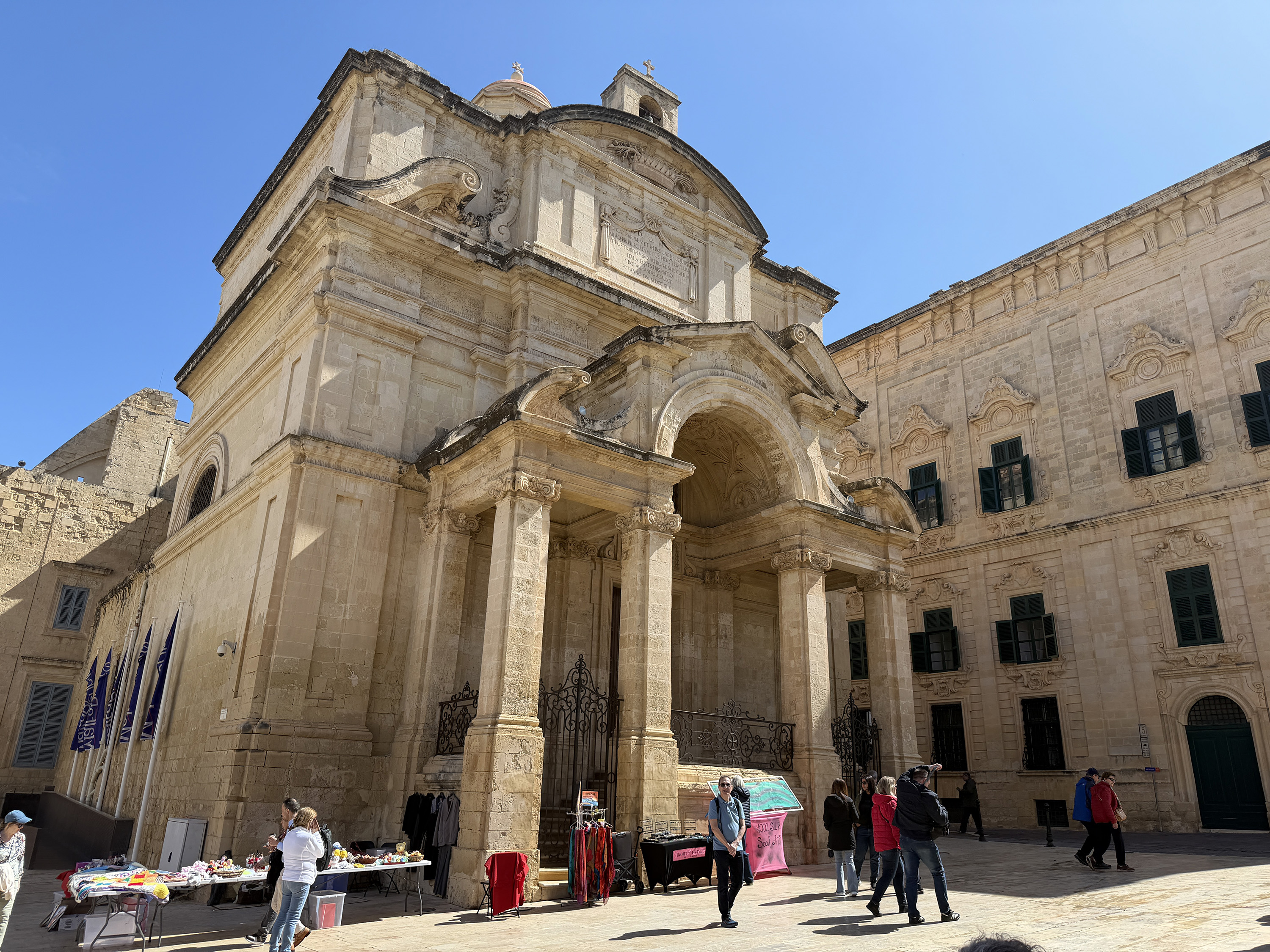 Outside, we saw a statue of Jean Parisot de Valette, for whom the city is named. He led the defense in the 1565 Great Siege. We passed by the Auberge de Castille (Il-Berġa ta’ Kastilja), where traveling knights were housed, but is now the prime minister’s residence. We crossed a pretty square, Barrakka Gardens, that was 50 meters above the underground headquarters of Eisenhower’s Operation Husky in 1943 (the Lascaris War Rooms). There is an overlook of the harbor that features the daily firing of a signal gun at noon.