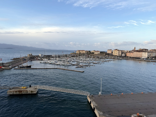 On the way back, Didier expounded on the lives of Napoleon and Pasquale Paoli (the island’s greatest statesman). We visited Austerlitz Square, where a large staircase monument commemorates Napoleon’s battles (only the winning ones) and civil achievements. Behind it is the Cave of Napoleon, which he hung around as a boy. The plaza below was the site of Pope Francis’s final foreign visit. Driving back into town, we had a choice: take a one-hour walk in the light rain to visit a church or stay on the bus to return to the ship. We chose the latter. It was a quiet afternoon on the ship. Viking doesn’t have many activities in comparison to other lines. There’s a port talk each afternoon, but we generally watch a replay of it on our cabin TV. Also, there is a fancy tea service. Dinner was at The Restaurant (main dining room). The evening show was the four ship vocalists performing “Legends.” Quite good.