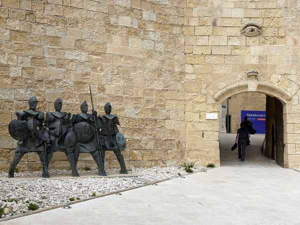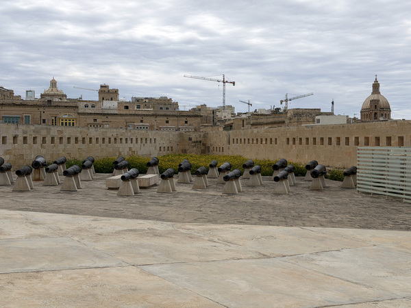 The fort is in pretty good repair and quite impressive, but the real draw here is the National War Museum. It’s small but very well done, covering history from the arrival of the Knights to World War II. (No mentions of the Phoenicians, Carthaginians, Romans, or Arabs.) All bilingual displays are done up in a modern style. Brief movies about the Great Siege (June–September 1565) were assembled from animated portions of historic frescos. The Ottomans attacked and eventually took Fort Elmo, but reinforcements from Sicily helped the Knights drive them off the island. This was a really significant battle because it halted Ottoman expansion in the western Mediterranean and probably saved Italy and Sicily from Muslim conquest. It was also one hella vicious battle, with crucifixions and human heads used as cannonballs.