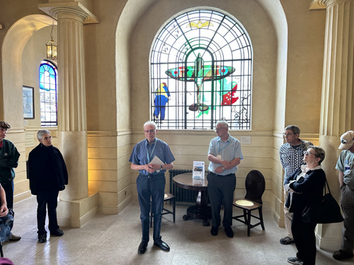 We checked out of the Angel and bused 90 minutes to Milton Keynes for a visit to Bletchley Park. This was actually my third visit since 2019, so I was unconcerned that inadequate time was allocated. We had a one hour tour with a rather droll guide named Mike Saunders, but it was quite superficial, not entering any of the hut exhibits, for instance. Then we had but one hour to eat lunch and see whatever else we could squeeze in. I made a brief return visit to hut 11/11A to see the replica Bombe demo again. I did not bother with a lot of photographs for this return visit. I will point you to my previous visit for additional details.