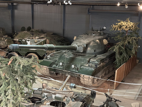 The next building concerned land warfare and they had a number of tanks, vehicles, and artillery pieces. I only photographed a few of the interesting tanks. It was sort of an odd display because the building was rather dark and all of the vehicles were displayed amidst ruined buildings, rubble, and camouflage gear, trying to simulate a combat environment. There was a Tiger I, but it was only a replica. There were British, German, and Soviet tanks from World War II and the Cold War, but I did not see any American (other than an M3 Grant that supposedly belonged to Montgomery in North Africa). Next was a building with Battle of Britain aircraft and a companion building that represented the Duxford sector control operations room, similar to but smaller than the Bentley one yesterday. On outside display were a number of civilian airliners as well as a beautiful B-17, which was carrying two identities. One side had a very risqué naked lady painted on the nose and the name Sally B (which I learned was the correct name) and the other a replica of the Memphis Belle nose paint. The actual Memphis Belle is preserved in the US Air Force Museum in Ohio. There is also a Concorde owned by the museum, but it was in a building that I somehow overlooked.
