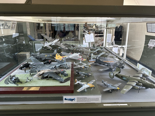 The museum, which also includes a restored control tower, was pretty similar to the previous ones, but they had a lot more equipment artifacts, both intact and horribly mangled in crashes. There is a beautiful B-17 model at 1/10th scale, the Lady Velma. There is a data board about Sgt. Hewitt “Buck” Dunn, who holds the distinction of completing 104 missions! And lots of photos and descriptions of local plane crashes. A very impressive collection.