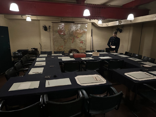 Our final stop was at Whitehall for the Churchill (Cabinet) War Rooms. This was my third visit, but since the previous one in 2019, they seem to have improved the display infrastructure quite a bit and they now have an audio device to carry around and explain stations. All the underground rooms seem about the same as I recalled, and remain quite interesting, but the very extensive Churchill biography section seems a bit improved. It is unfortunate that the room most interesting to me, the map room, is very difficult to examine or photograph in detail.