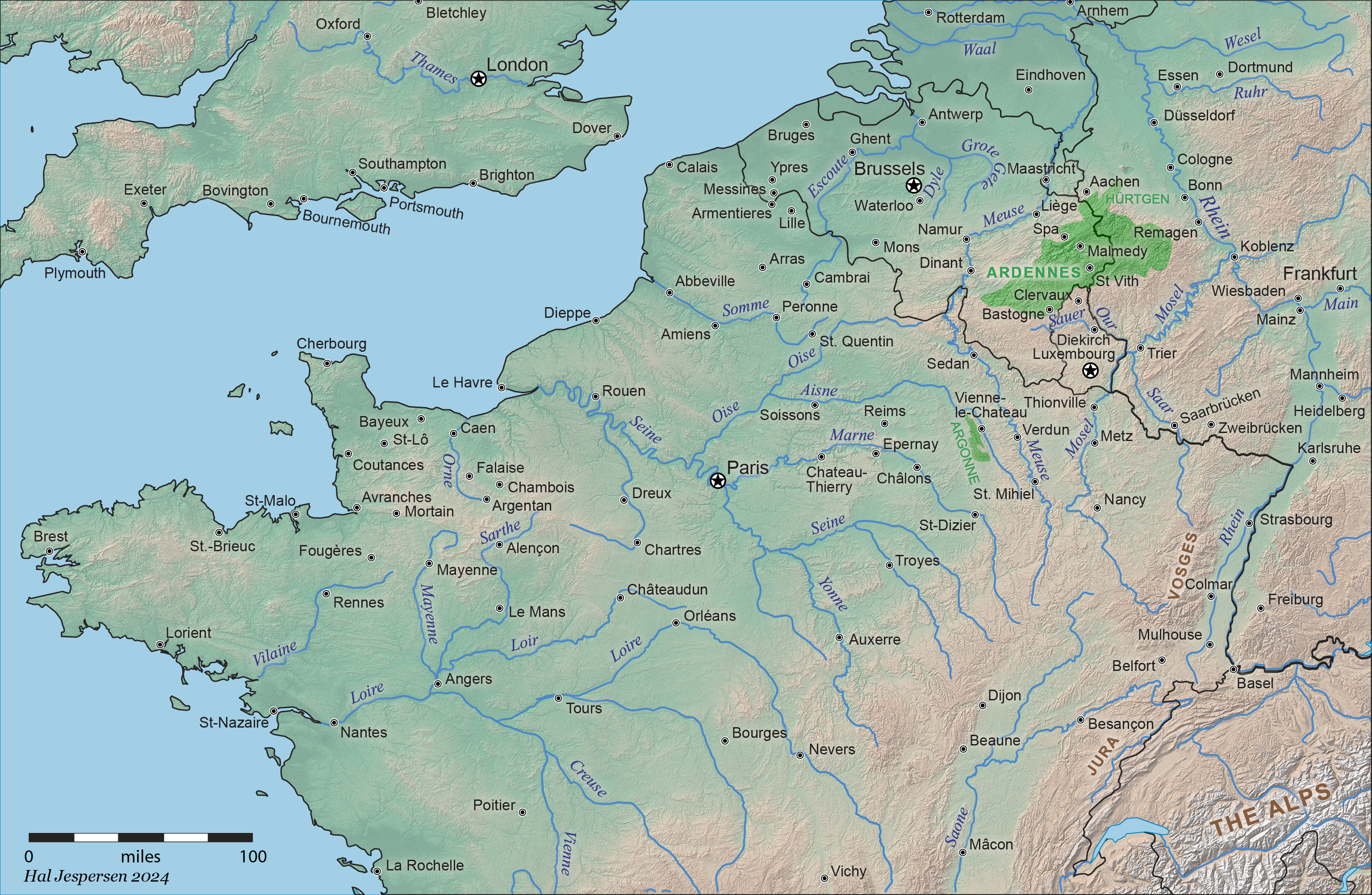 I created this map so that I could follow our itinerary and battle action across all of the important rivers in the European theater.