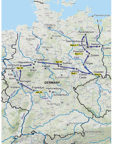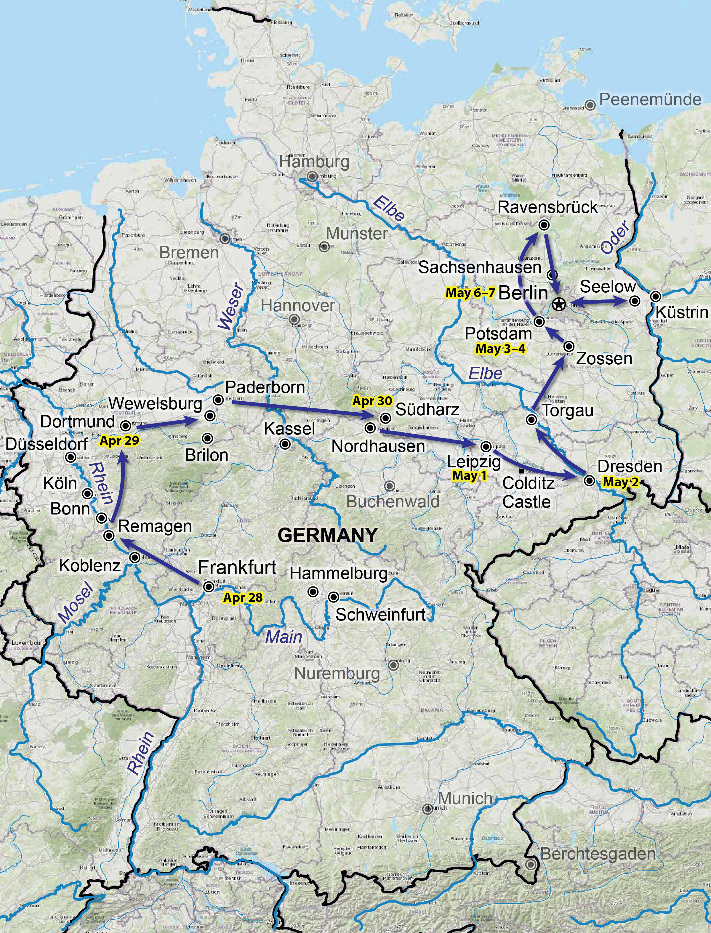 This is my report on a trip to Germany to commemorate the end of World War II in Europe (V-E Day), hosted by Stephen Ambrose Historical Tours. This is my fifth outing with SAHT and the third led by historian Chris Anderson. The most recent one was here. Last fall I did a different tour of WWII Germany, described here, so there will be a little bit of overlap. The report is long with a lot of photos, so I have divided it into three parts:
