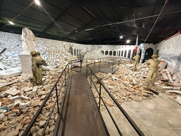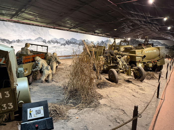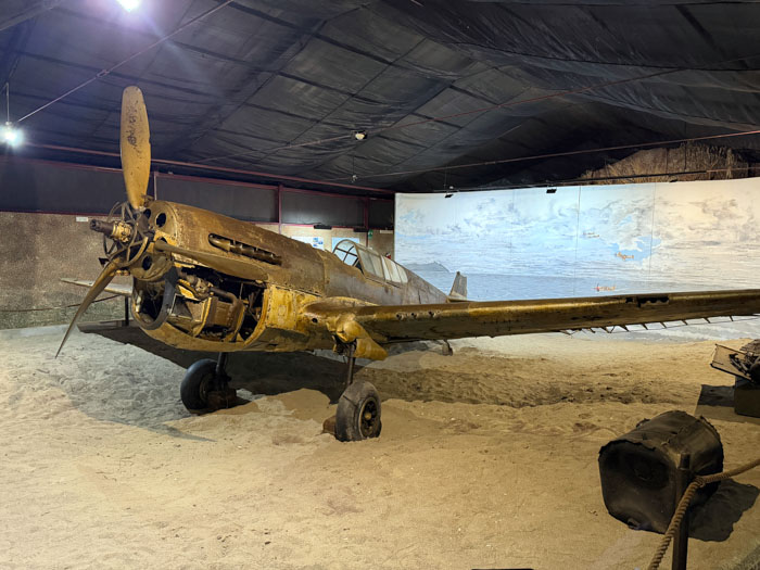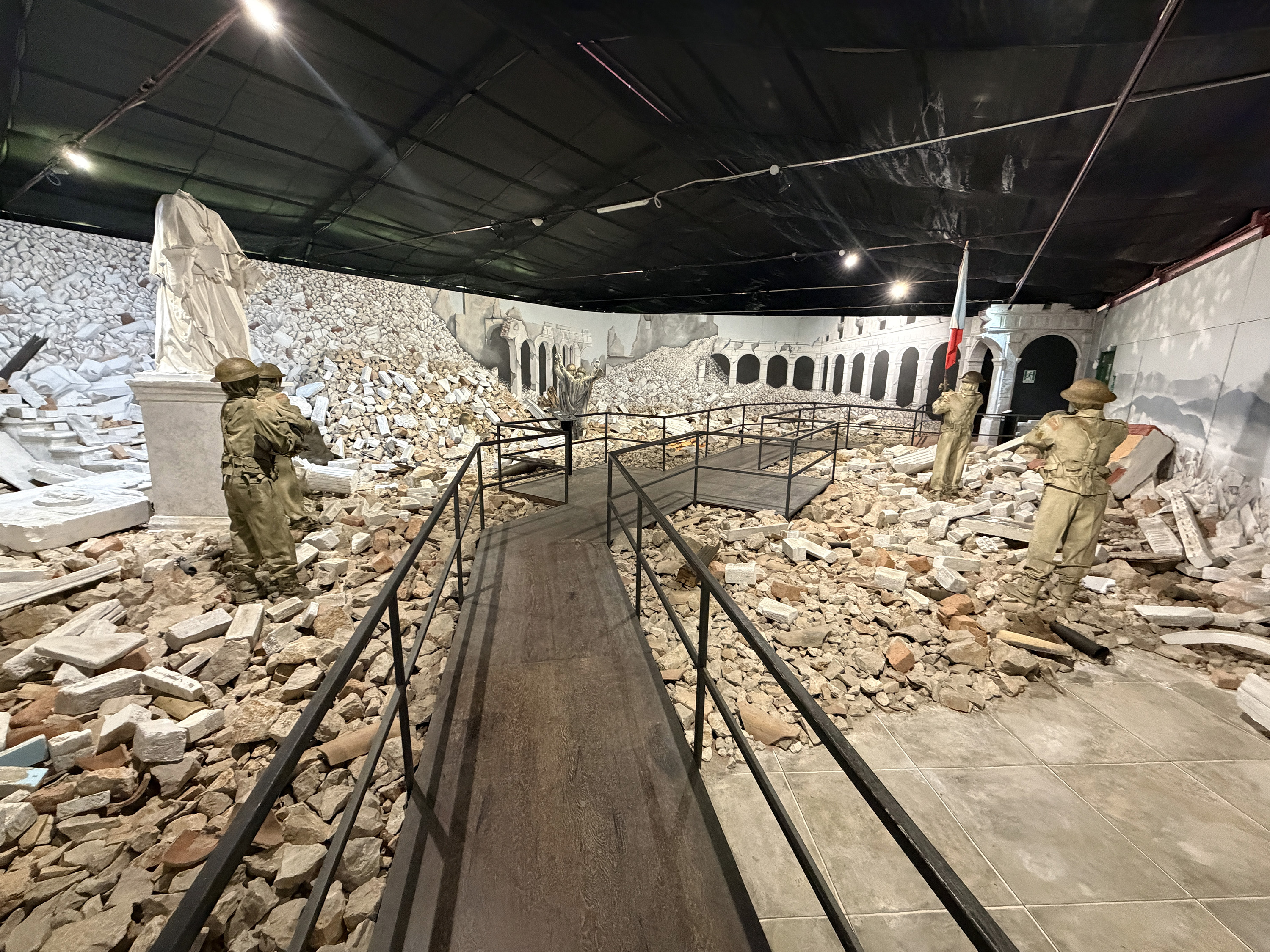 There was a shed each on Anzio and Cassino. Both had elaborate dioramas, and a lot of battle descriptions. The maps were good, although most were simply copied from original sources, translated into Italian. The battle descriptions were a little light, but offered no surprises. There was one panel that described the action of Italians on both sides of the battle, because some Italian units fought with the Germans. In the Anzio shed, there was a P-40L fighter that crashed off the beach and recovered in 1998. Also in Anzio was an exhibit about the spread of malaria. The Italians thought they had essentially eliminated it by the reclamation of the Pontine marshes, but a combination of German flooding of the area and supposedly some bacteriological warfare caused its return, which plagued a number of American soldiers.