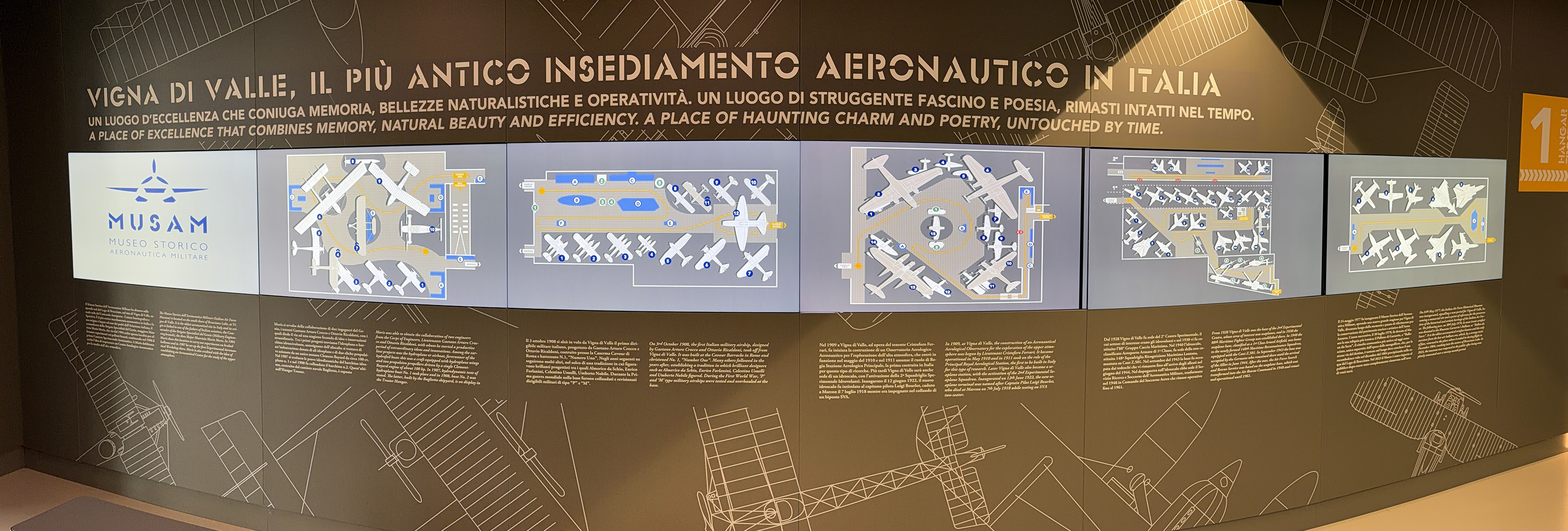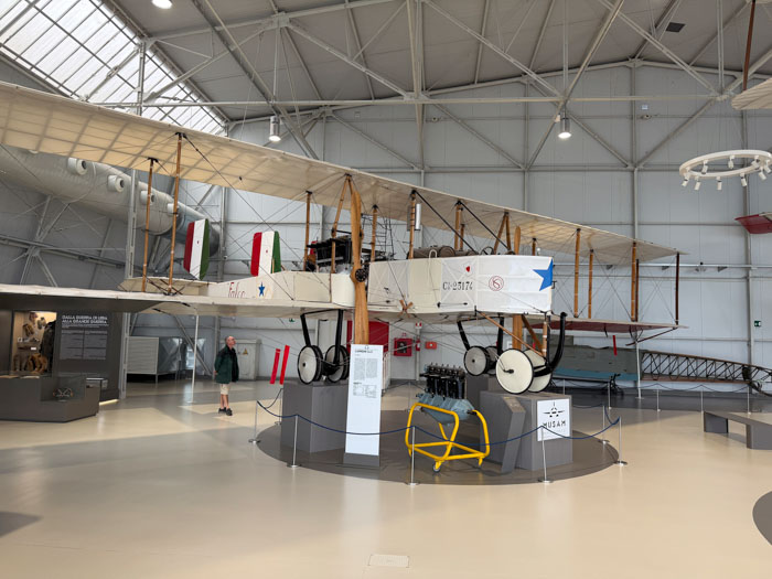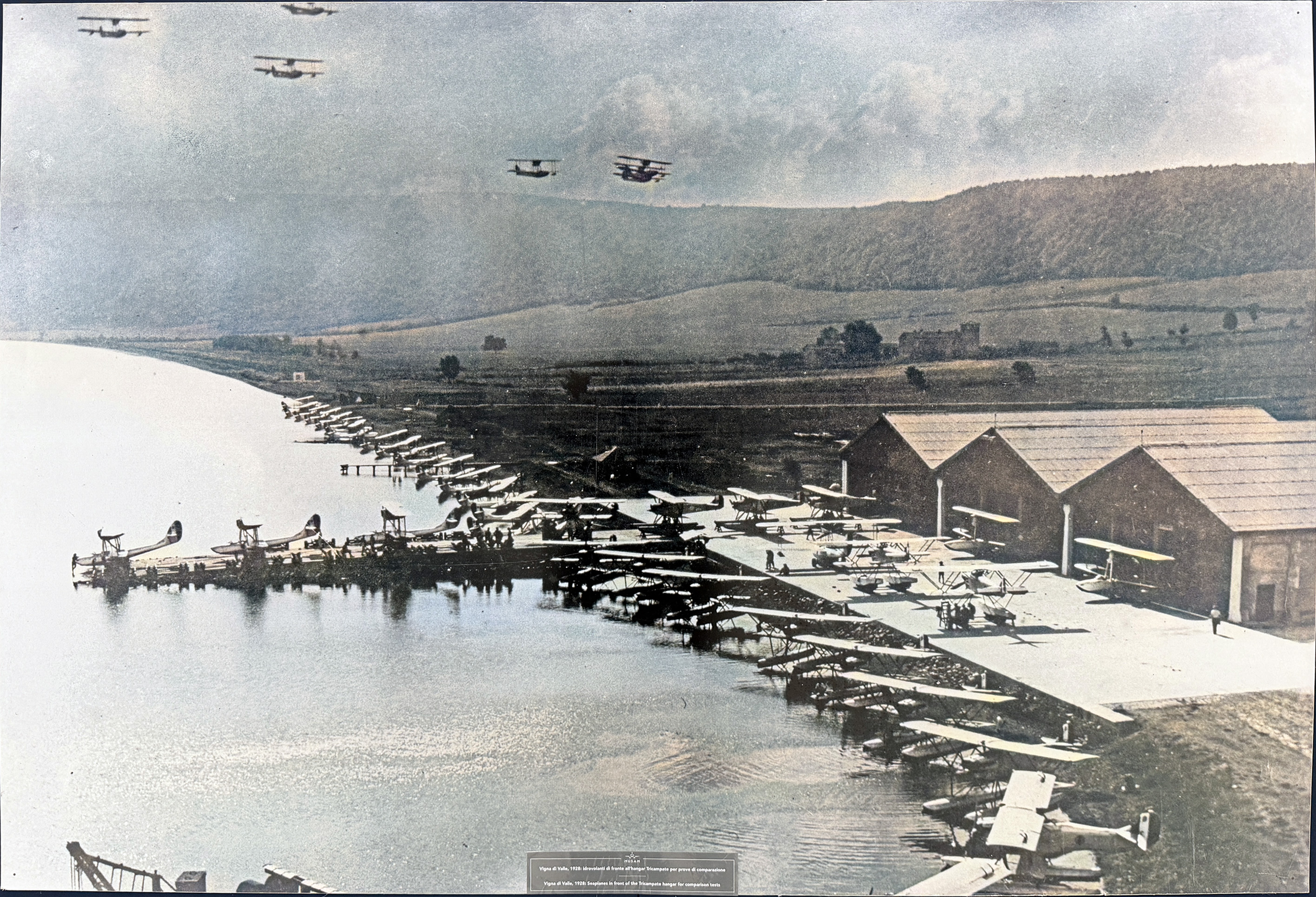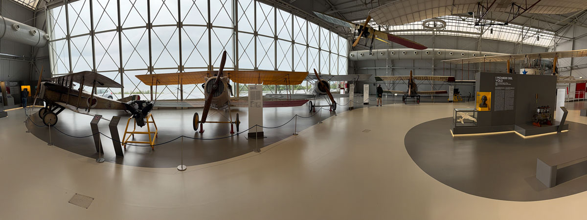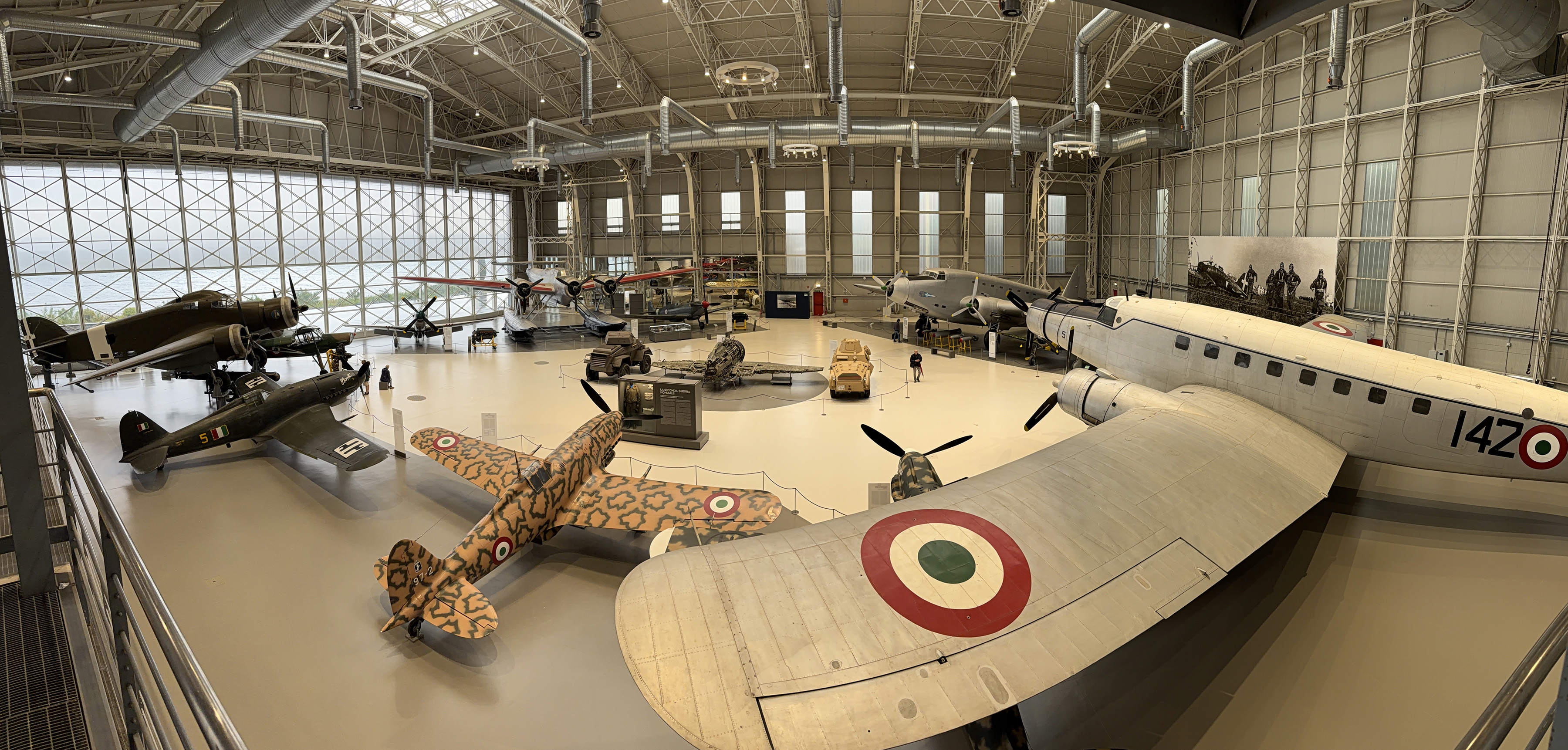 The first rainy morning of the trip. We will follow the Fifth Army in its advance north of Rome. But our first stop was the MUSAM (Museo Storico dell’Aeronautica Militare di Vigna di Valle), the Italian Air Force Museum housed in a former float plane base on the shores of Lago di Bracciano. We spent about two hours visiting their collection. This is a beautiful museum with primo quality aircraft and all of the exhibits are translated into excellent English. Since I am not an Air Force history buff, I did not attempt to photograph all of the aircraft, some of which were quite unusual. But I have included some interesting ones and some panoramas.
