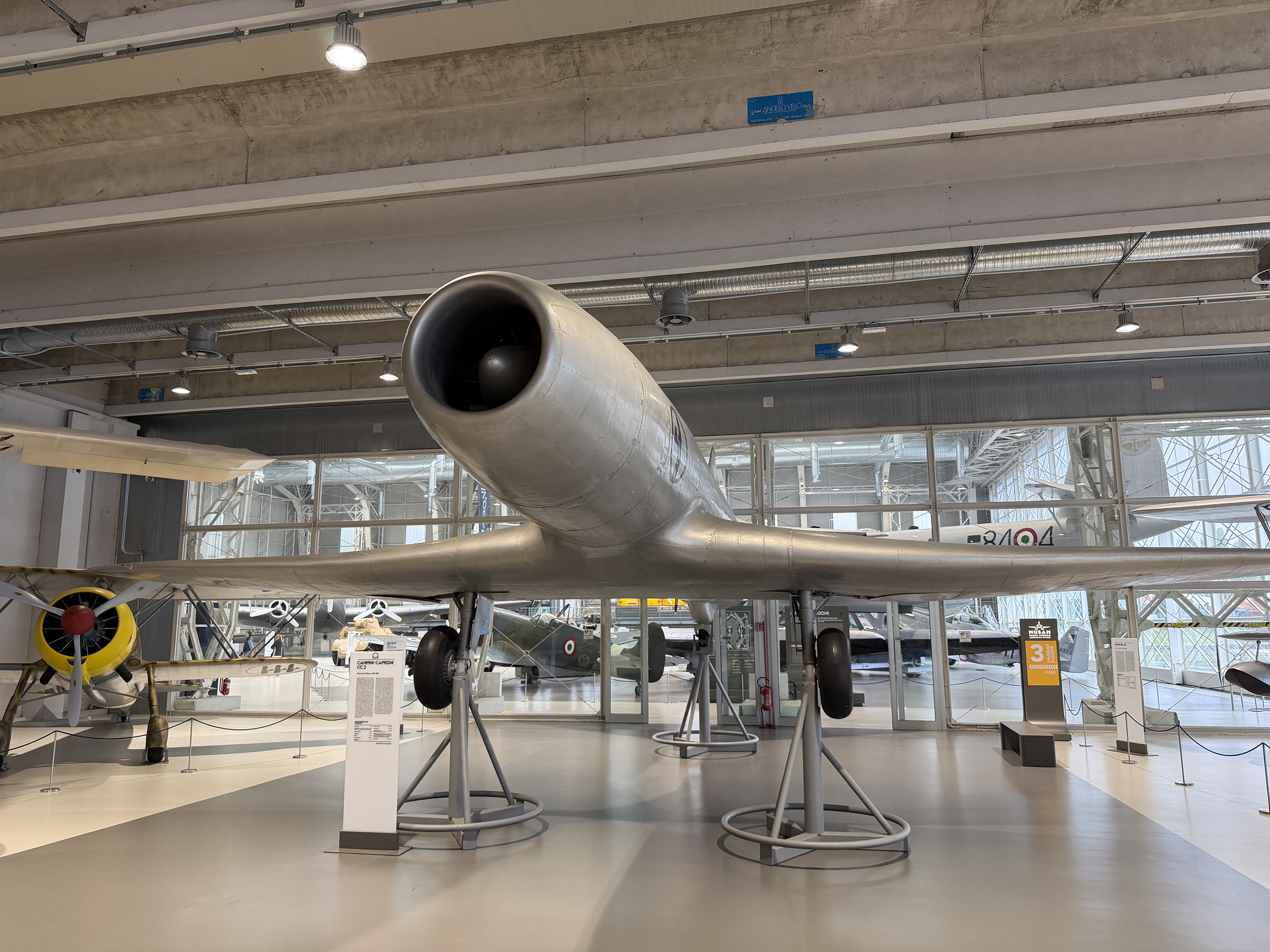I was attracted to an outlandish World War I bomber that looked like a Rube Goldberg contraption and must have taken real cojones to fly. There was a collection of sleek racing aircraft custom-built for international competitions in the 1920s, looking like they were designed by Ferrari or Lamborghini. And an extremely early jet plane that was built in 1940 but was never produced. It had an unusual jet engine that featured a compressor operated by a piston engine.