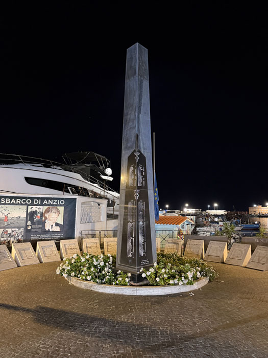 Before dinner, we drove to the port of Anzio to see the invasion monument there. Dinner was at the same seafood restaurant.