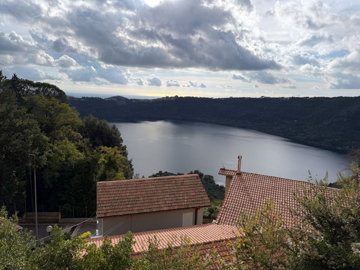 We drove for about an hour over and through the Alban Hills, where I got a glance at Castel Gandolfo, the Pope's summer residence overlooking Lake Albano. Then on the autostrada that circles Rome clockwise and ended up at a hotel northwest of the city, Relais Castrum Boccea. It is an unusual medieval-style set of buildings in a rural area. We had dinner in the hotel restaurant, which featured absurdly large portions. There were three courses, and I was able to eat only about half of each.