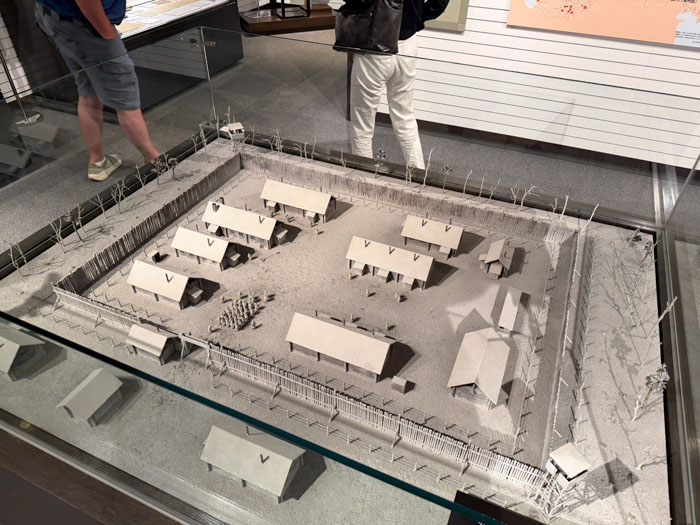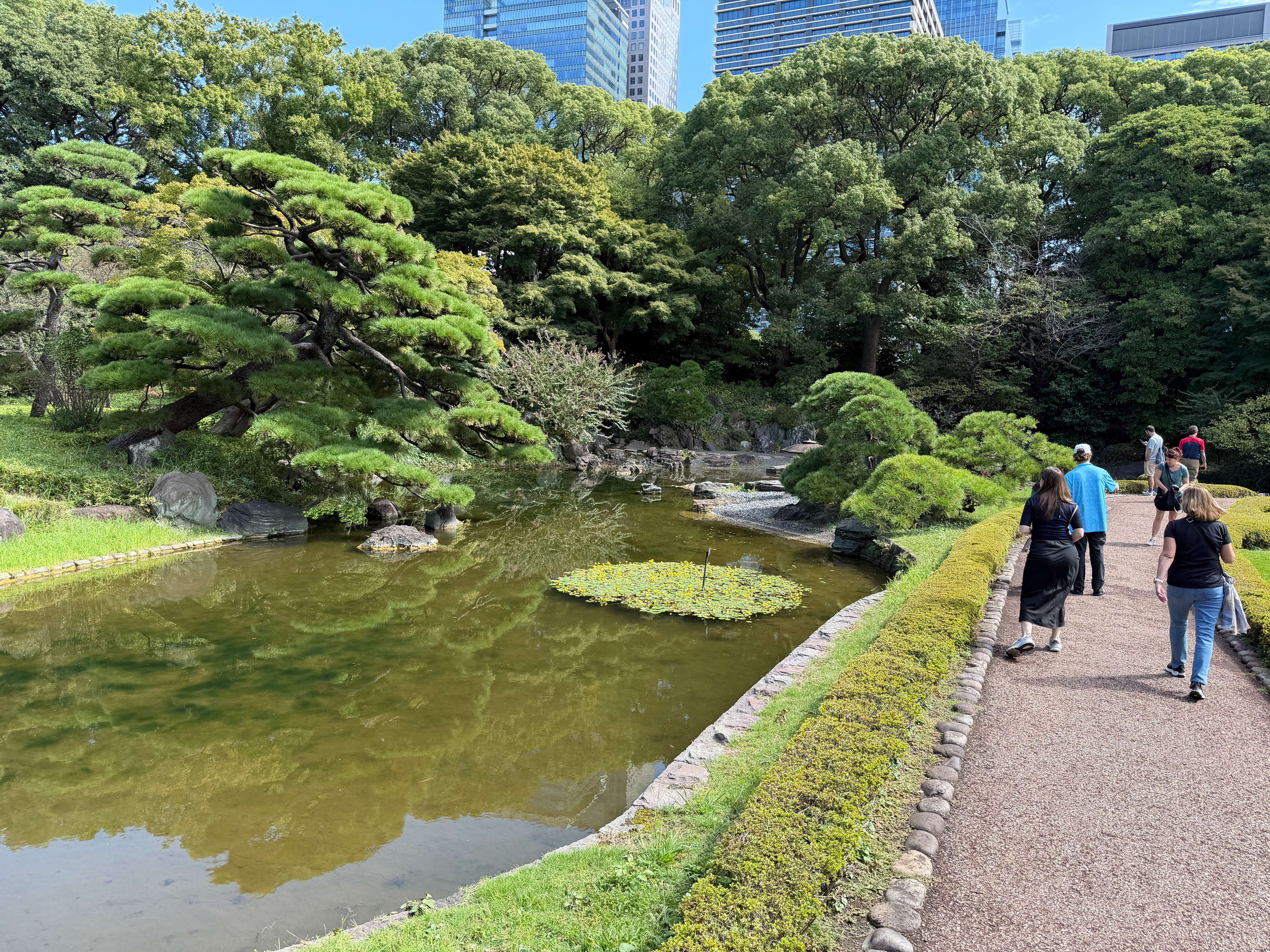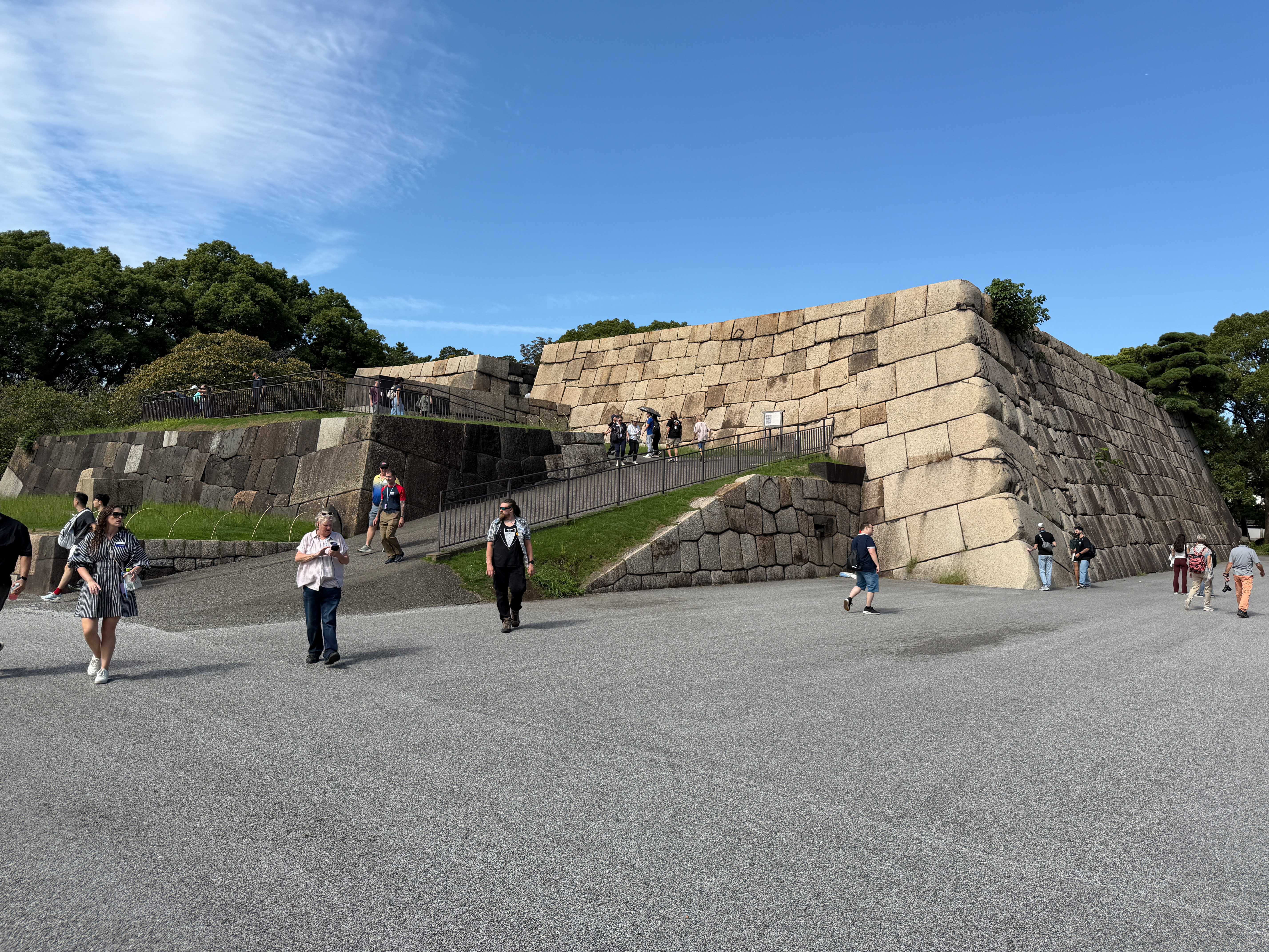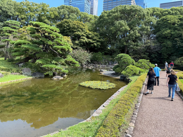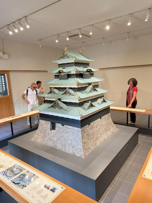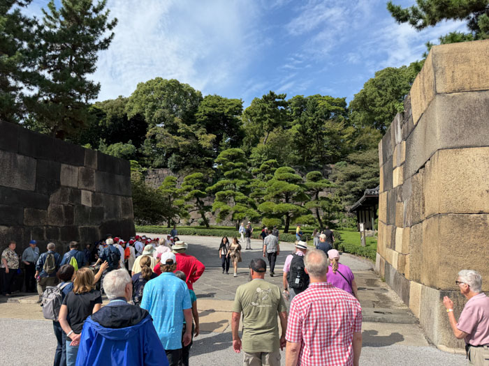 We drove to the grounds of the Imperial Palace and toured the East Gardens, 21 hectares, about one-fifth of the original palace grounds. This was the site of Edo Castle, which served as the residence of the Tokugawa shoguns and the center of political power during Japan's Edo period (1603–1867). Built in 1457, it became the Tokyo Imperial Palace after the restoration of imperial rule in 1868. It’s an attractive woodsy and grassy area without a lot of the flowers and vegetation we Americans associate with public gardens. It is surrounded by impressive moats, which look like small lakes and are 8 m deep. And there are massive stone walls throughout that use no masonry to stack the giant slabs of rock into a seamless construct. We climbed up the base of a tenshu (keep) that lost its 80 m superstructure in the 17th century. In a visitor center, there is a model of what it looked like. There was no WWII content in this visit.