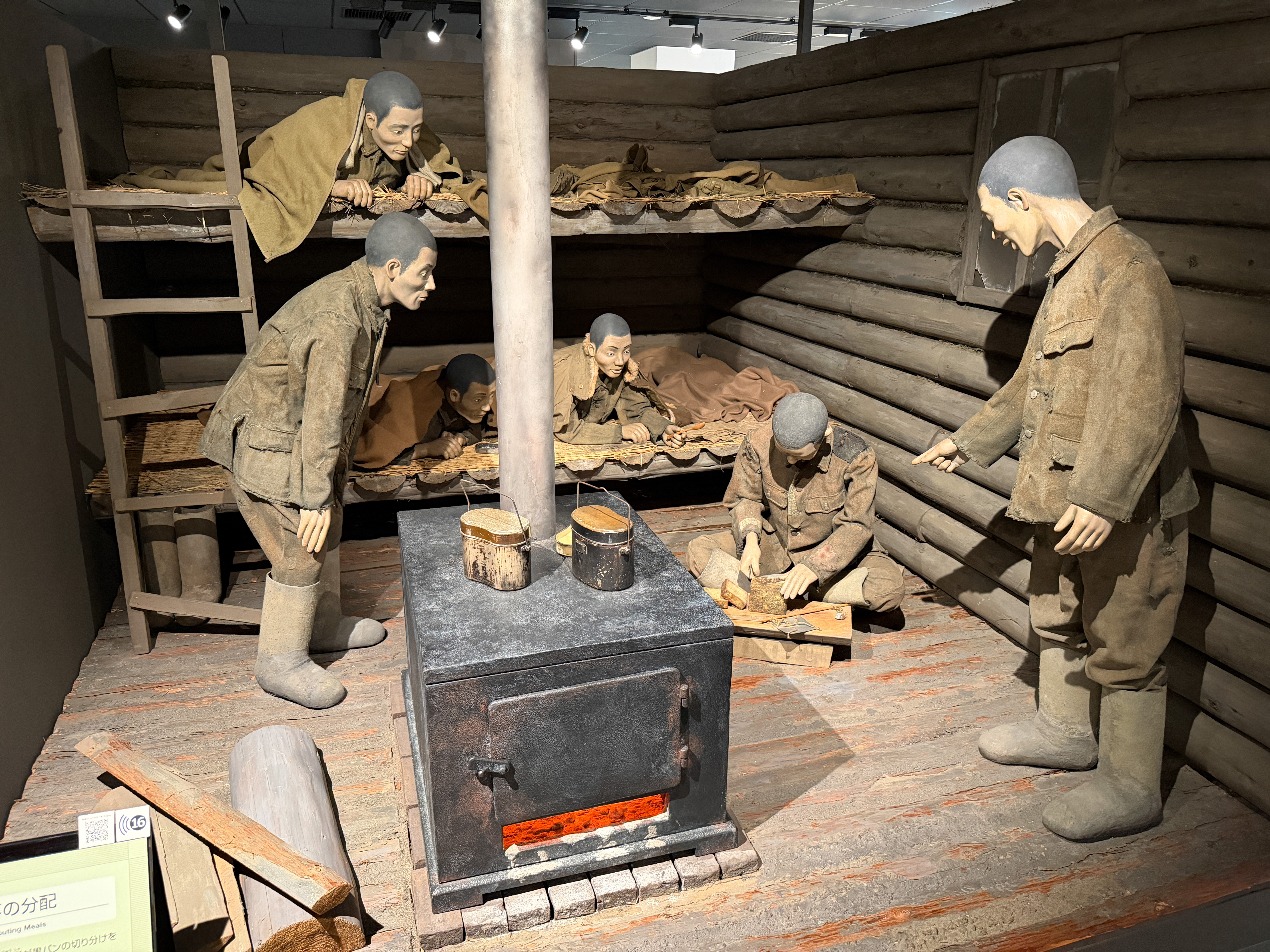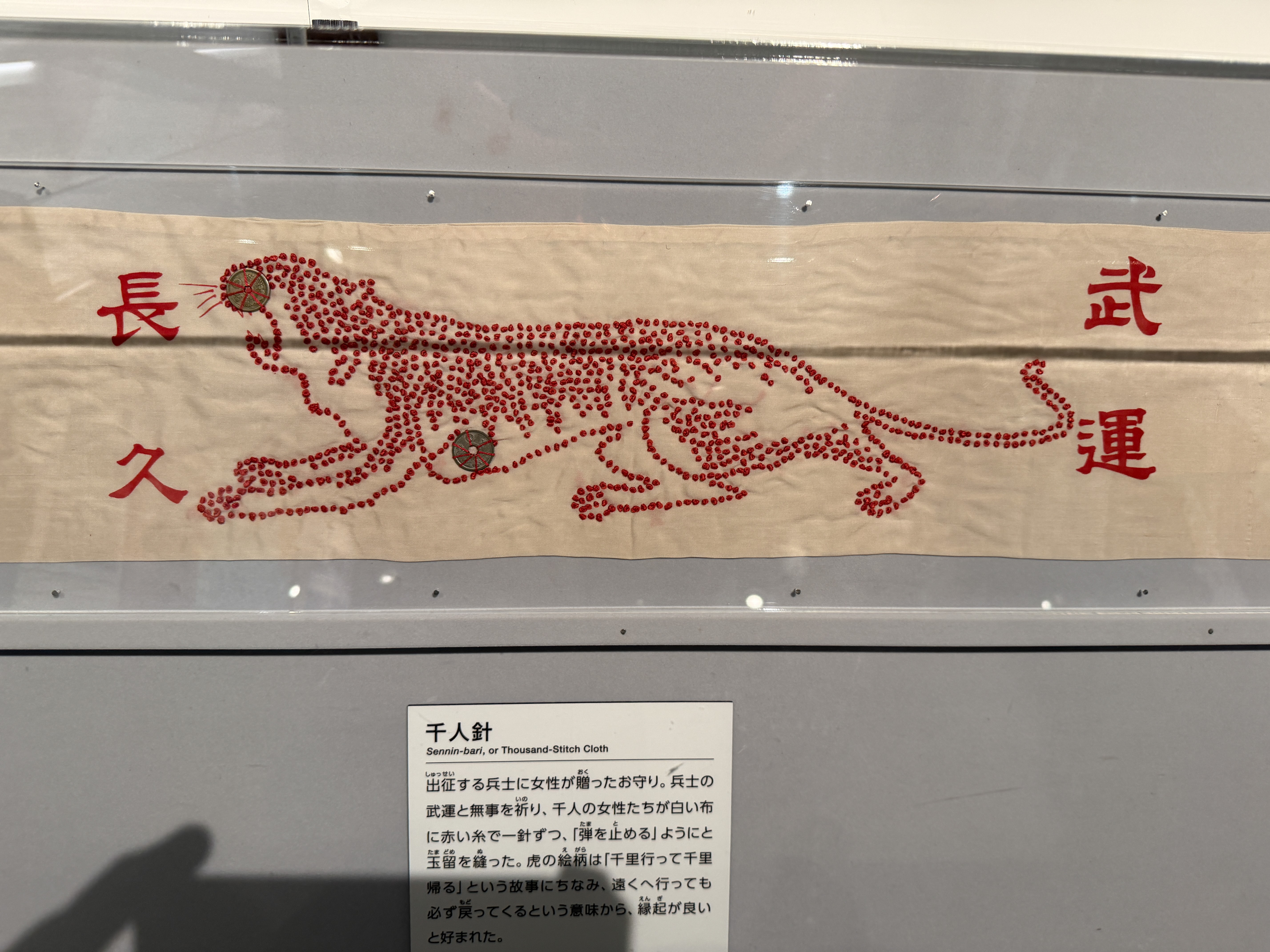 We met the other bus for a decent buffet lunch at the Hotel Metropolitan Edmont. Next was the Memorial Museum for Soldiers, Detainees in Siberia, and Postwar Repatriates, which is a small space on the 33rd floor of a Shinjuku office tower. Exhibits cover the life of Japanese soldiers, including the mandatory conscription system, a soldier's sense of duty, the draconian life of a soldier, and how the outlook of the war got worse over time. Then, after the Soviets invaded Manchuria in August 1945, they stole away 600,000 POWs and civilians to work at gulag slave labor camps, and exhibits document their fate. The exhibit text was about 98% Japanese, but headsets offering English commentary were available to only 20 of us. They displayed a very nice senninbari (“one thousand stitch”), which is a belt or strip of cloth stitched 1,000 times and given as a Shinto amulet by Japanese women to soldiers going away to war. The museum is nicely done, but you can absorb the major points in under 30 minutes. We were allotted 90.
