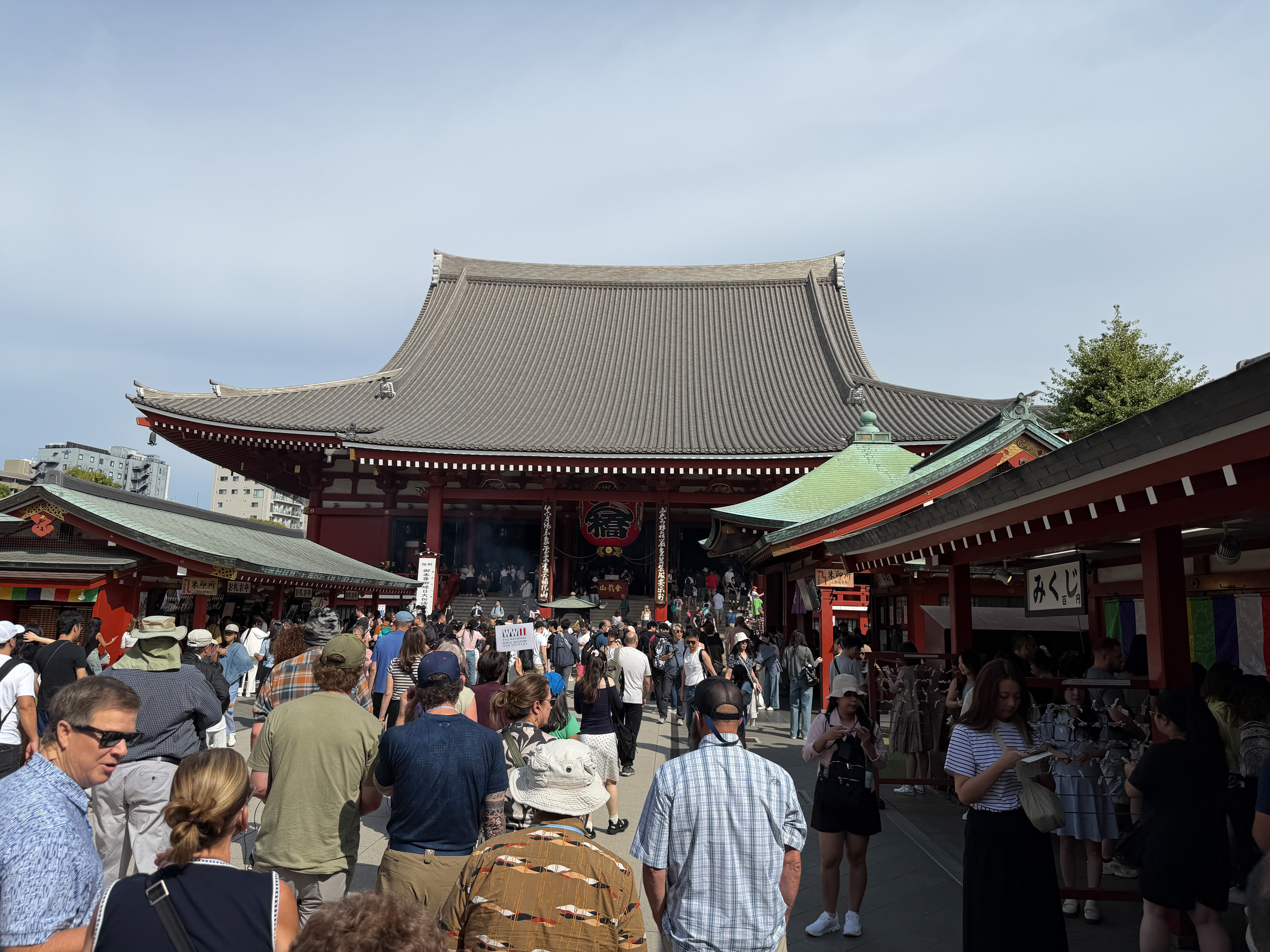 Two interesting aspects: we stopped at a massive Gingko tree that was a survivor of the firestorm. This was the only World War II content we got this morning. The itinerary for today was to go next to Akihabara, but it turned out that was a mistake, and we had to stay in the area of the temple. That is unfortunate because on my free days in Tokyo I wanted to visit it but did not because the itinerary said we were going there. We had three hours allotted here for the temple and lunch. Yasiko attempted to guide us around the various buildings, but I found it hard to understand her through The distorted radio signal. . So I spent about 90 minutes sitting in the shade on a wooden bench.