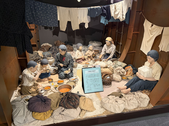 Next was the National Showa Memorial Museum (Showa-Kan). It is a small space on two floors that illustrates the lives of civilians during the Shōwa period, 1935–64. (I found out that Hirohito was known as Emperor Shōwa.) No photos were allowed. The exhibits are entirely in Japanese, but they offered a phone app to be downloaded that provided summary narrations in English. They covered wartime rationing, militarism in the school system, student labor, homeland defense, and preparation for air raids. In the postwar section, they addressed the dire food shortages, black markets, and the fate of war widows and orphans.