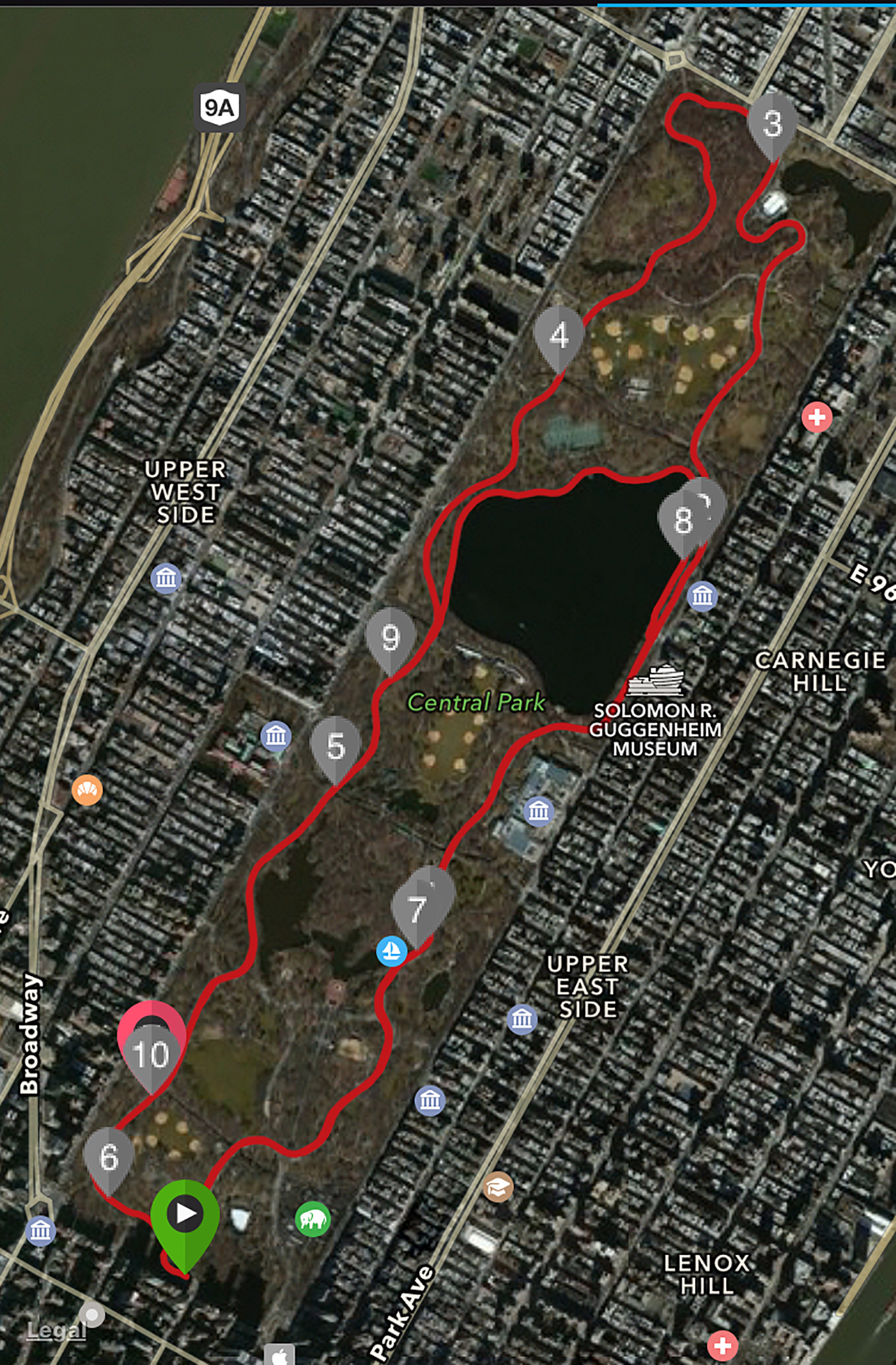 As part of my marathon training, I needed to do a 10-mile run this weekend, so I did it in Central Park, first taking the full 6 mile loop and then a shorter one that went around the reservoir. The weather was simply beautiful and there were lots of walkers and bicycles in the park. While I did that, Nancy visited the Museum of Modern Art. After resting up, we took the subway to the Staten Island Ferry and enjoyed the free round-trip. For dinner, we met our three New York cousins at a Greenwich Village restaurant called Knickerbocker Grill, which was a very nice “neighborhood” restaurant with excellent food.