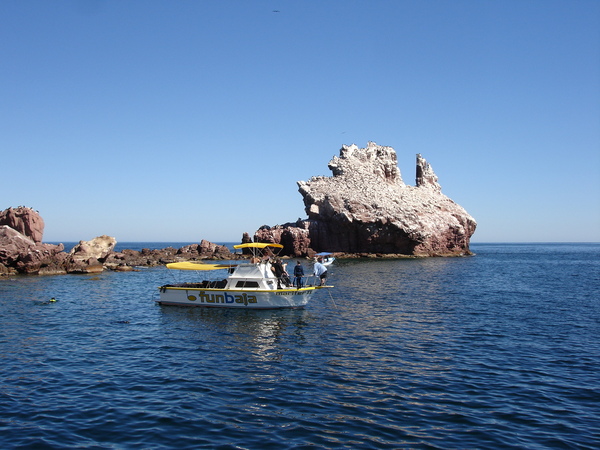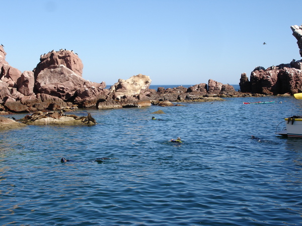We signed up for a snorkeling tour of Los Isolotes. There was an hourlong boat ride to an isolated island where we visited a sea lion refuge. We were provided with wet suits because the sea temperature was 68°F. It was moderately fun to swim among the sea lions, many of whom were only six months old and still playful, but it was very cold and a bit disconcerting when the giant male sea lions kept barking and making rude gestures at us. There was a second stop at a relatively rare Mexican coral reef, where the fish were apparently quite plentiful and colorful, but we were too cold to consider another dip. Some of the passengers complained of mild stings from jellyfish. But we did have yummy beef tacos for lunch.